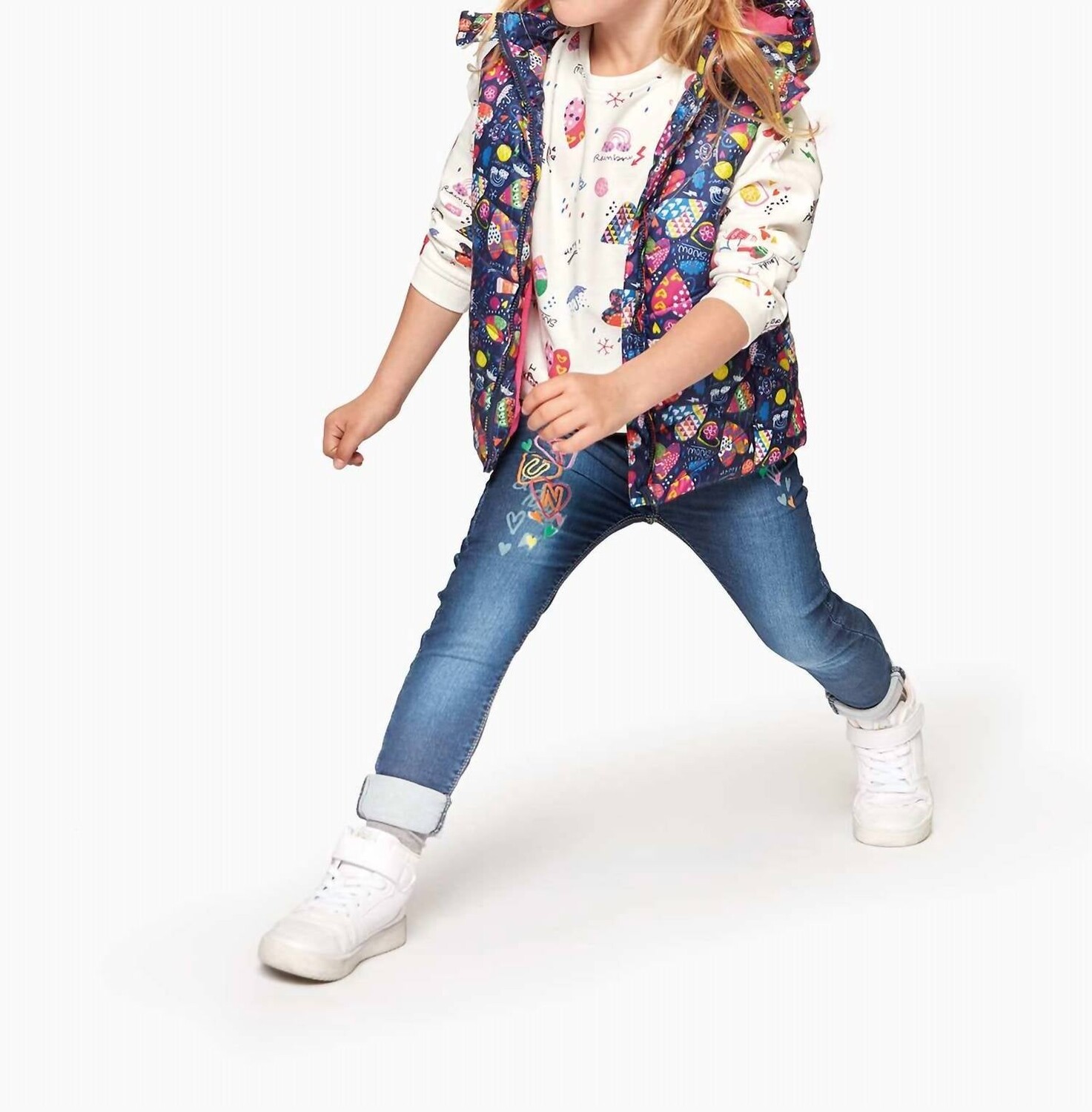 Джинсы среднего синего цвета с вышивкой для девочек LOSAN