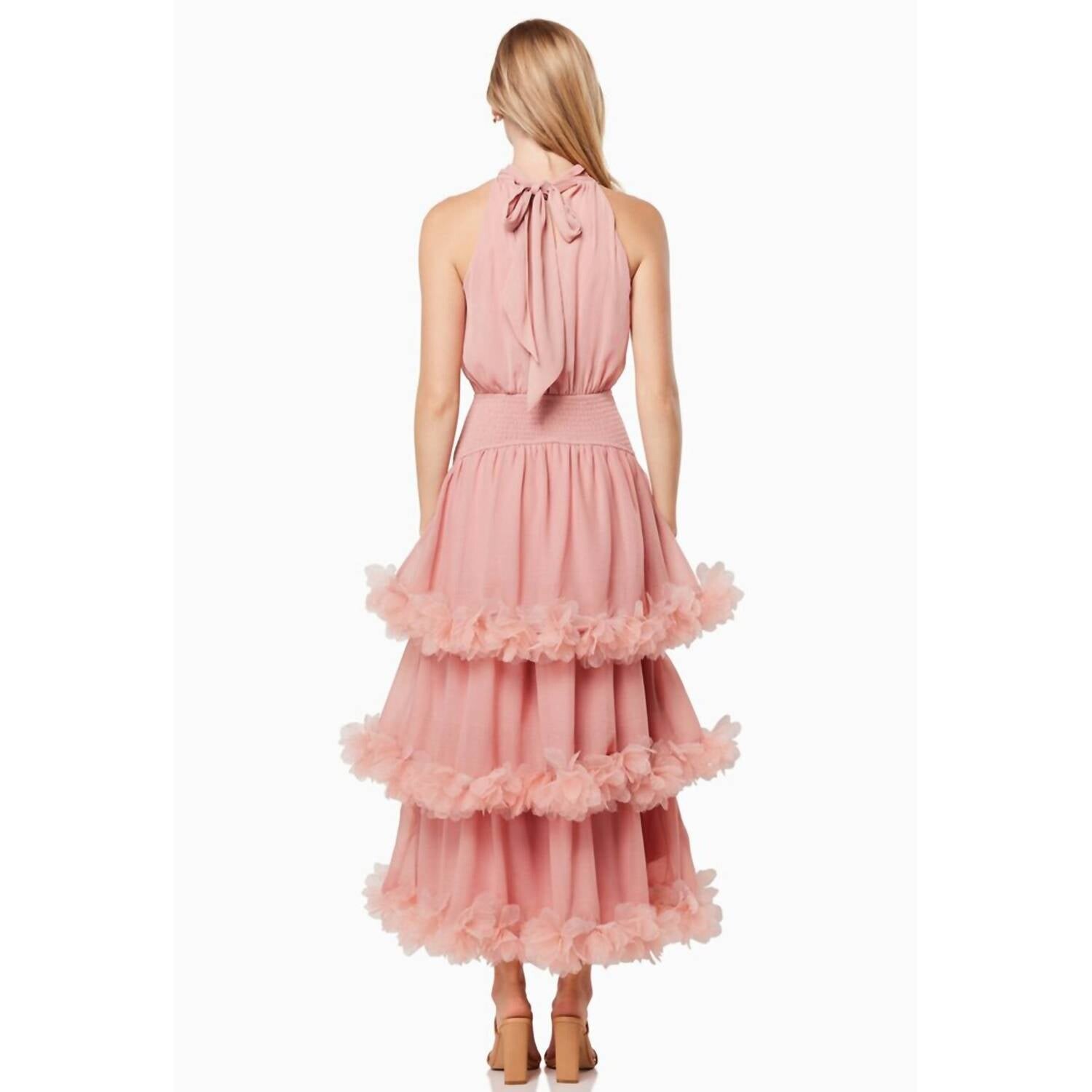 Платье-макси, одновременно милое и удобное. Ложный вырез. Без рукавов. 3-х слойная юбка. Регулируемая завязка на шее. 100% полиэстер. Профессиональная химчистка.