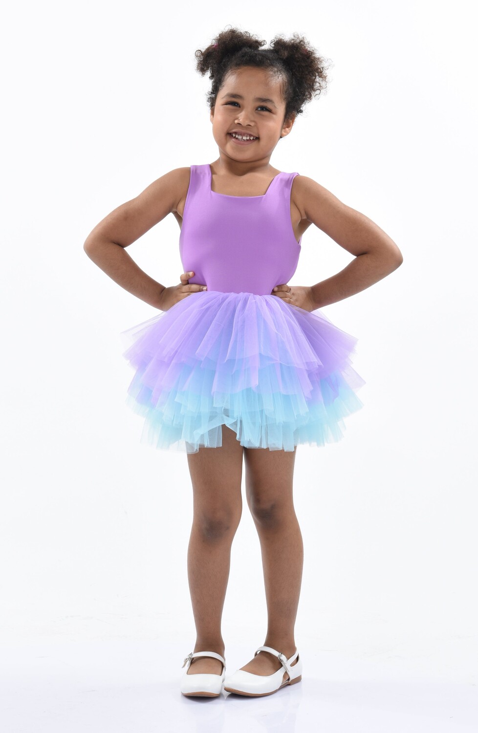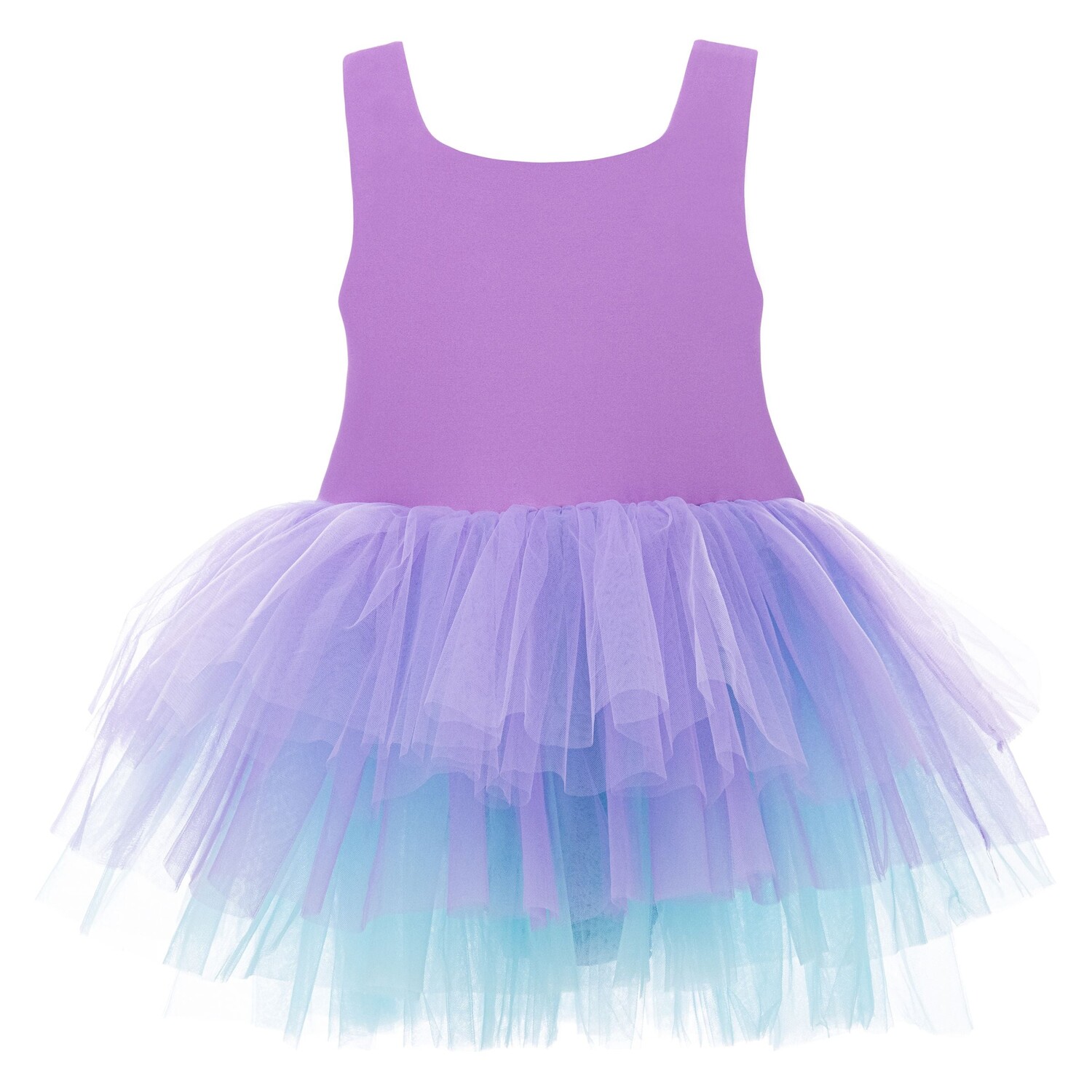 Фиолетовое купальник-пачка Lilian для малышек от Mimi Tutu. Тонкие рукава, квадратный вырез горловины и несколько слоев легкого пышного тюля с синей тюлевой подкладкой. 100 % полиэстер, Подкладка — 100 % хлопок. Машинная стирка 30SKU — MTL325-Lilian.