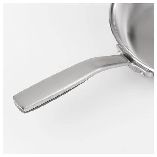 Вся сковорода, включая дно и стенки, имеет один слой алюминия между двумя слоями нержавеющей стали. Это позволяет равномерно распределять тепло и энергию в нескольких направлениях и легко регулировать температуру.