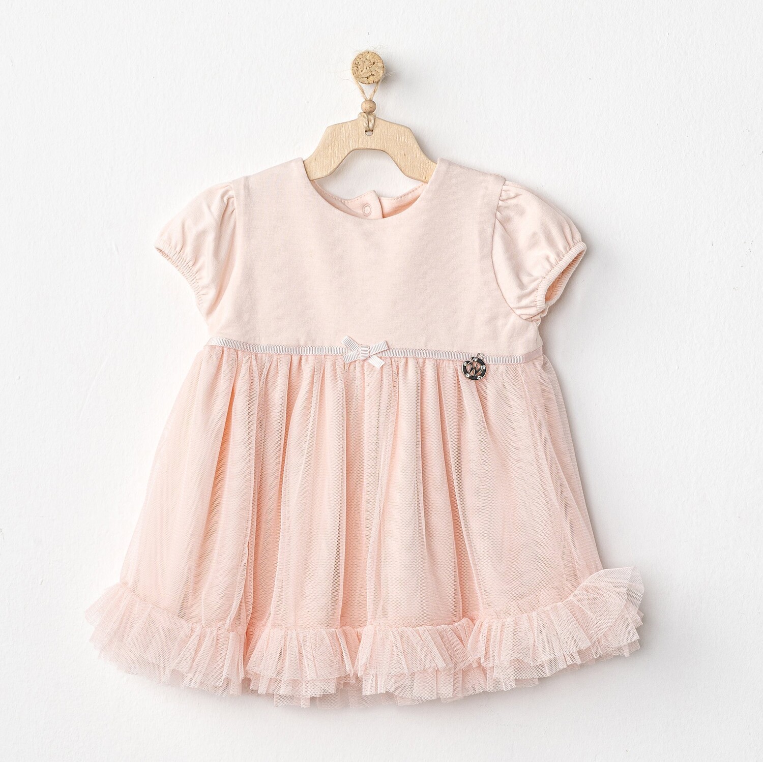 Вечернее платье из тюля розового цвета для девочек от Andy Wawa. Розовый лиф с пышными рукавами, легкая тюлевая юбка и застежка на пуговицы. Идеальное платье для вашего малыша!Утенок