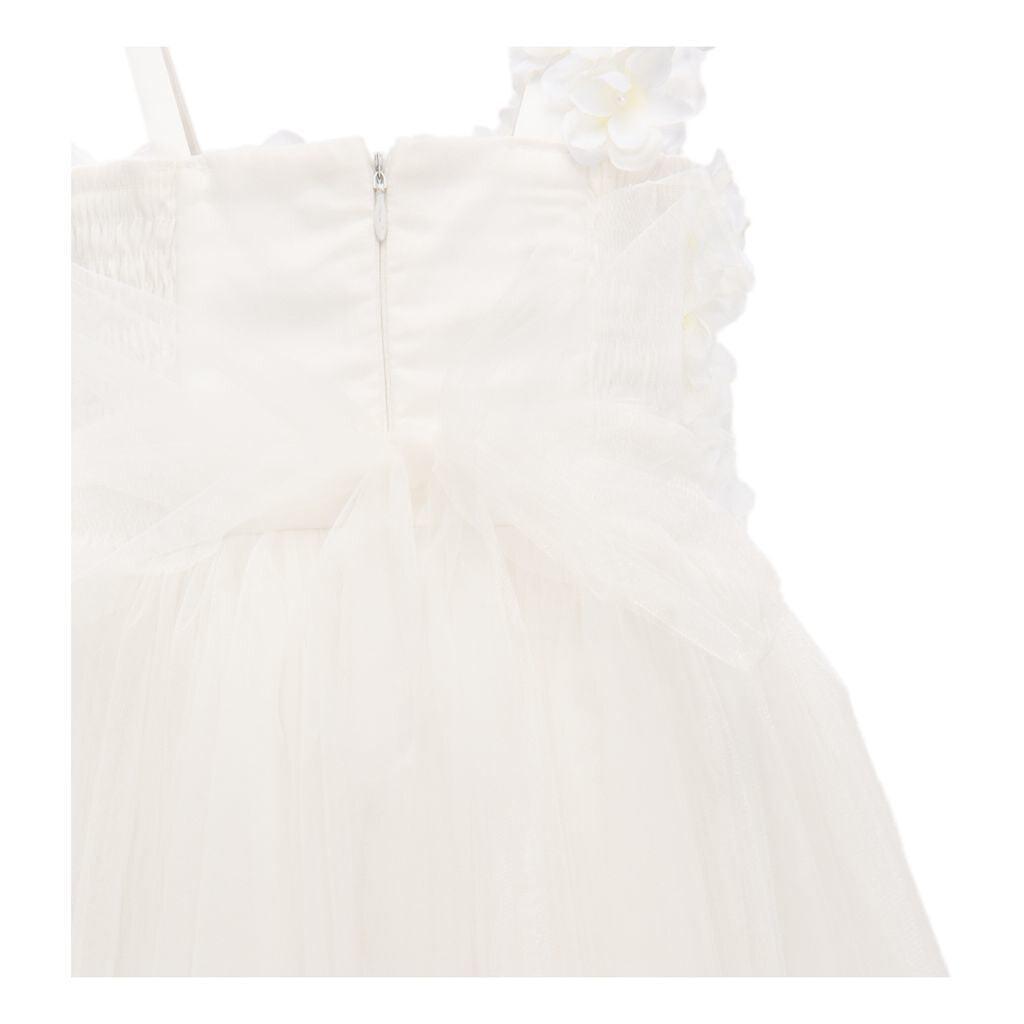 Платье Virdelle от Tulleen — цветочная фантазия, элегантная и экстравагантная. Это белое платье с открытыми плечами и высокой талией украшено цветочным узором, идущим от правого плеча к левому плечу девушки, дополненным чистым струящимся платьем из тюля внизу, украшенным цветами поперек тюля. Артикул - 5340