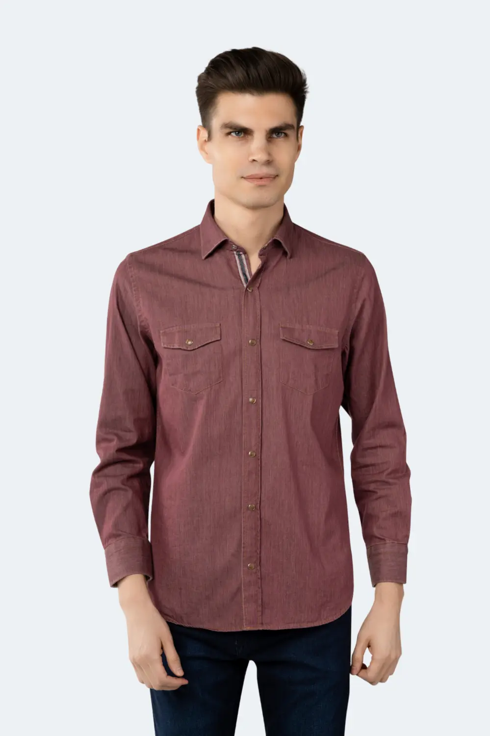 Румяна-красная джинсовая рубашка Luchiano Visconti