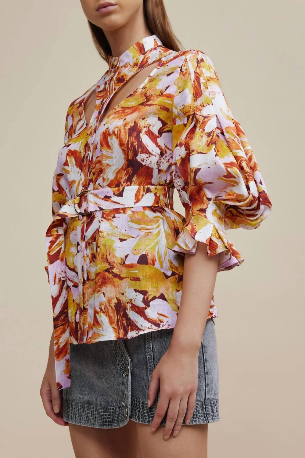 Сочетайте это с вашими любимыми джинсами и шлепанцами для следующего девичьего вечера. Акцентированные рукава, изогнутый вырез. Застежка на пуговицы спереди. Ремень с D-образным кольцом и роскошной золотой фурнитурой. Силуэт рубашки, рукава 3/4, манжеты со складками. Состав - 40% Лен, 60% Вискоза. Подходит - соответствует размеру.