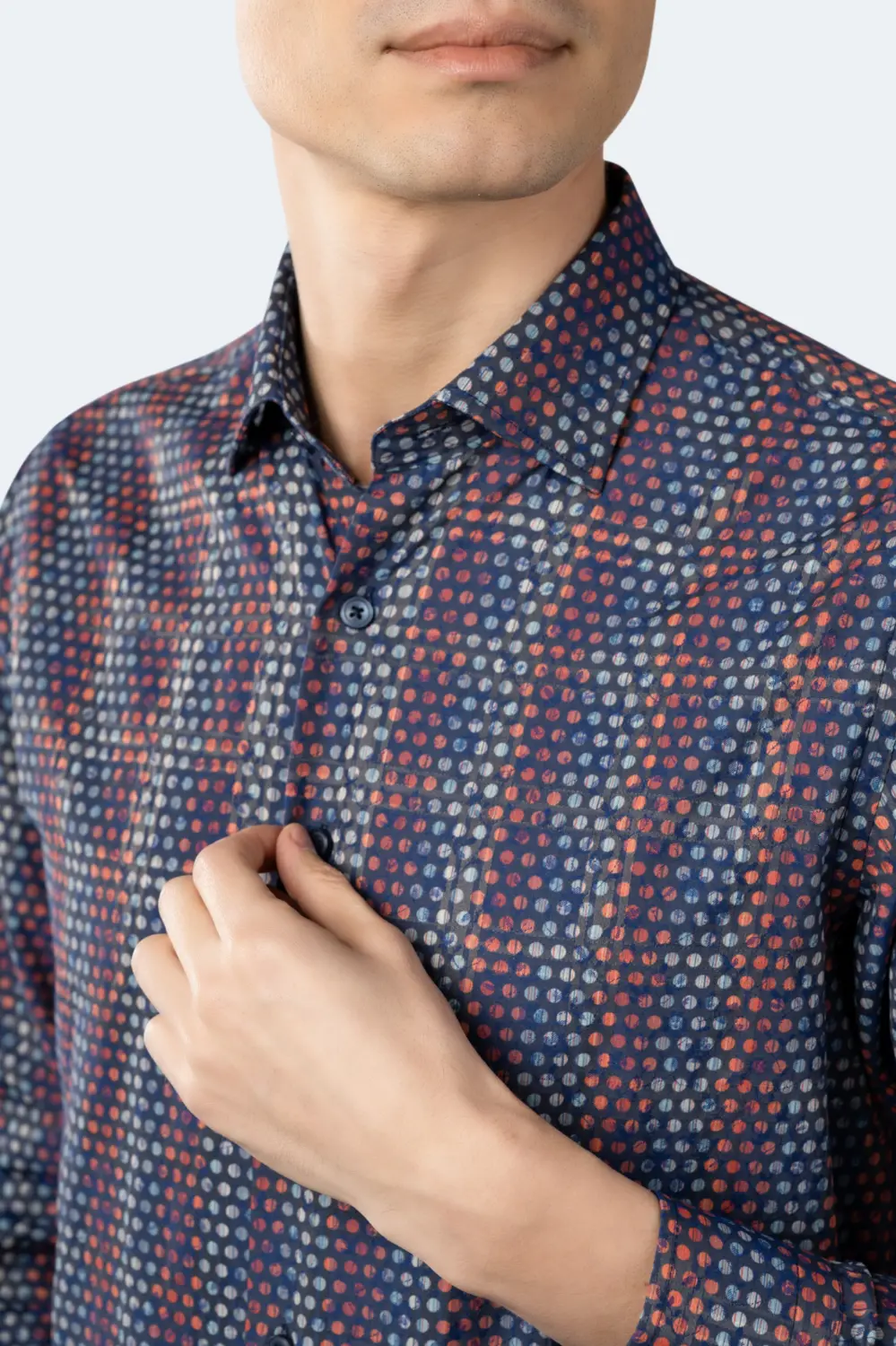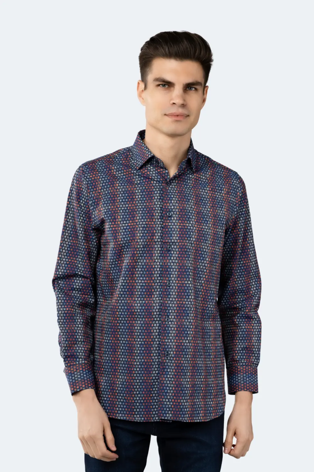 Изысканная и эксклюзивная вещь: темно-синяя рубашка сезона осень-зима 23 с оранжевой, пудрово-синей и бежевой рубашкой от Luchiano Visconti станет идеальным дополнением к изысканному гардеробу. Эта рубашка с роскошными деталями, такими как застежка на пуговицы, представляет собой привлекательное сочетание темно-синего и ярких цветов и идеально подходит для любого модного случая. 65 % хлопок, 35 % полиэстер.