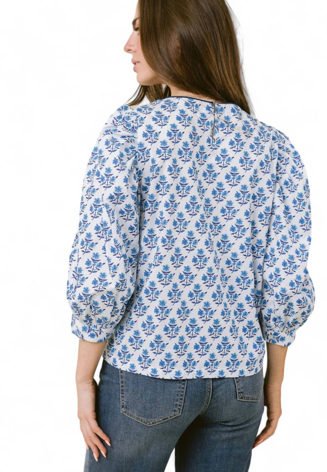 Хлопковый топ с рукавами 3/4 Darby Blue Bouquet Laroque