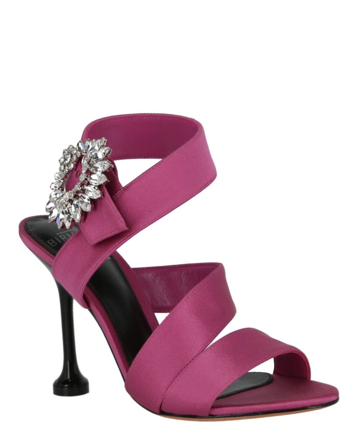 ДЕТАЛИВысота каблука - 3,9 дюйма. Запах, застежка-пряжка и брошь с кристаллами Swarvoski. Перекрещивающиеся ремешки союзки. Миндалевидный носок. Каблук-труба. Длина до щиколотки; Атласная отделка.