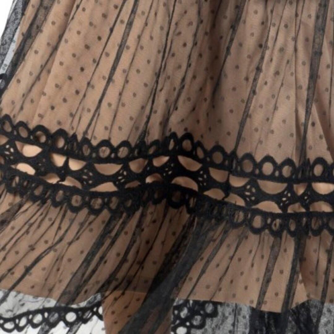 Платье Серены, украшенное замысловатыми кружевными вставками, является свидетельством внимания Акалии к деталям. Нетронутый черный оттенок дополнен кокетливыми оборками, которые придают платью завершающий штрих. На модели маленький размер