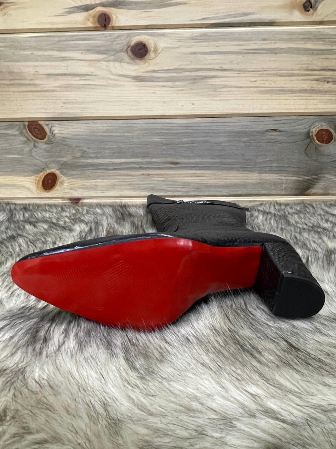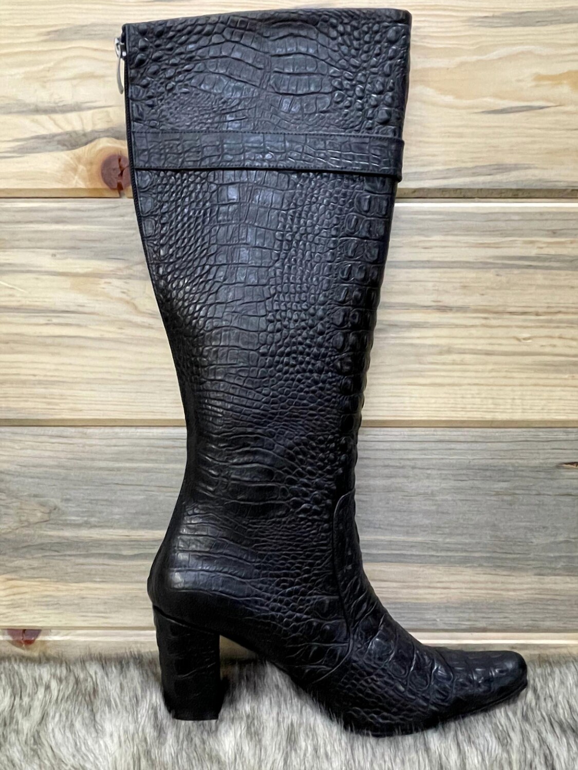 Улучшите свою обувь с помощью этих классических ботинок на каблуке, сочетающих в себе изысканность и стиль. Достаточно удобно для долгих дней или ночных прогулок по городу. Ищете потрясающие ботинки, удобные и стильные? Черные ботинки на кубинском каблуке до колена от Rockwell Tharp — это именно то, что вам нужно! Такая изысканность в этих ботинках из кожи с тиснением. Таблица размеров — 38 = 7,5–8 США. 40 = 9,5 -10 США