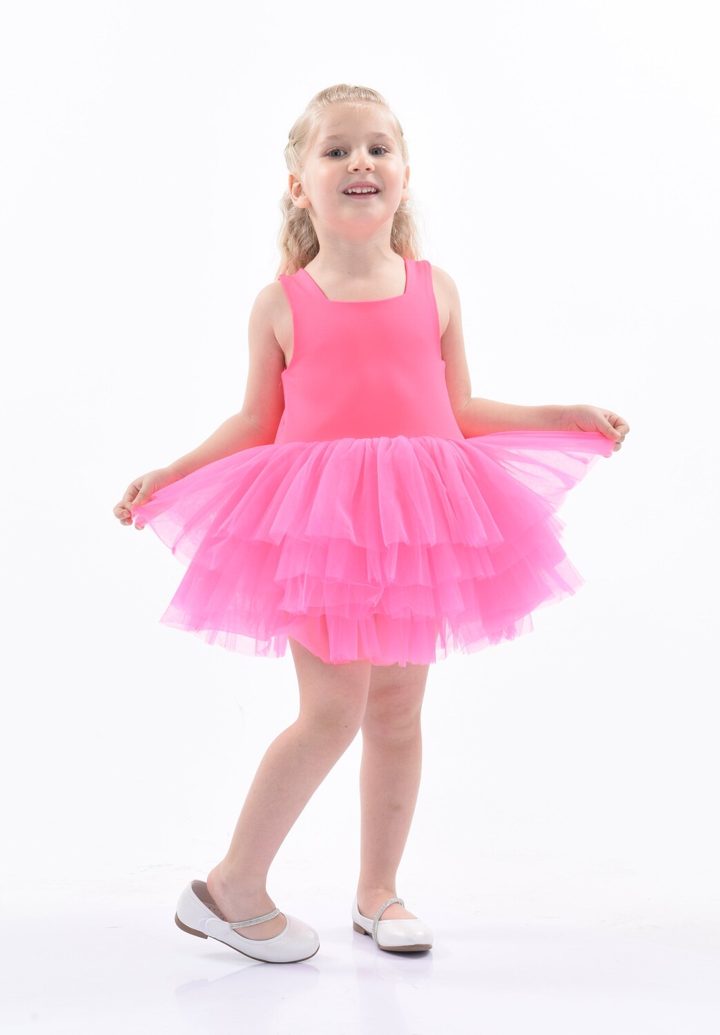 Розовое сплошное купальник-пачка с французскими розами для маленьких девочек от Mimi Tutu. Тонкие рукава, квадратный вырез и несколько слоев легкого пышного тюля. 100 % полиэстер. Подкладка — 100 % хлопок. Машинная стирка 30SKU —  MTL321-Французская роза.