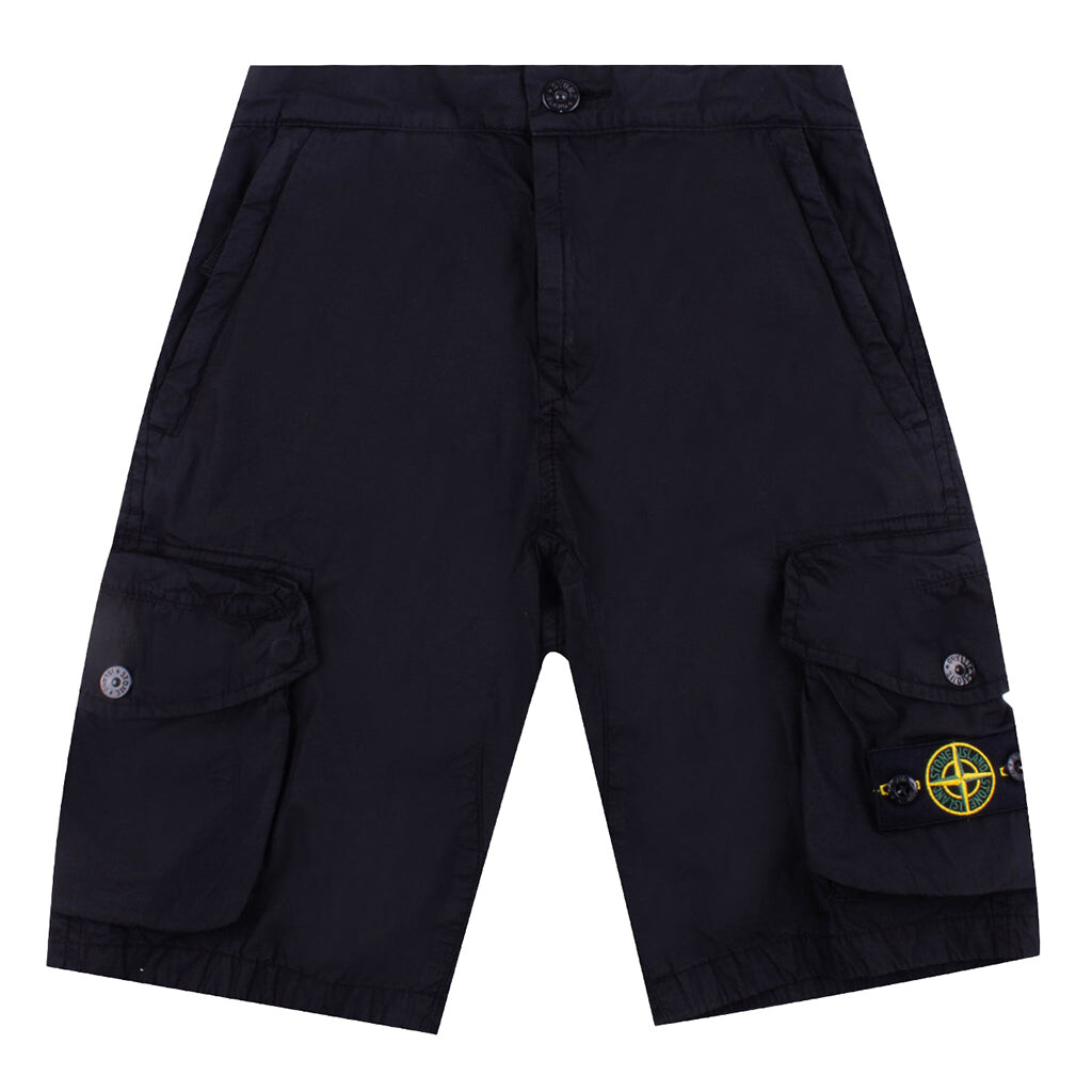 Черные хлопковые шорты Stone Island из хлопка. Имеет по одному карману с каждой стороны и фирменный мотив компаса на левой штанине. 100% хлопок