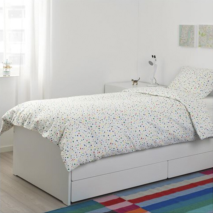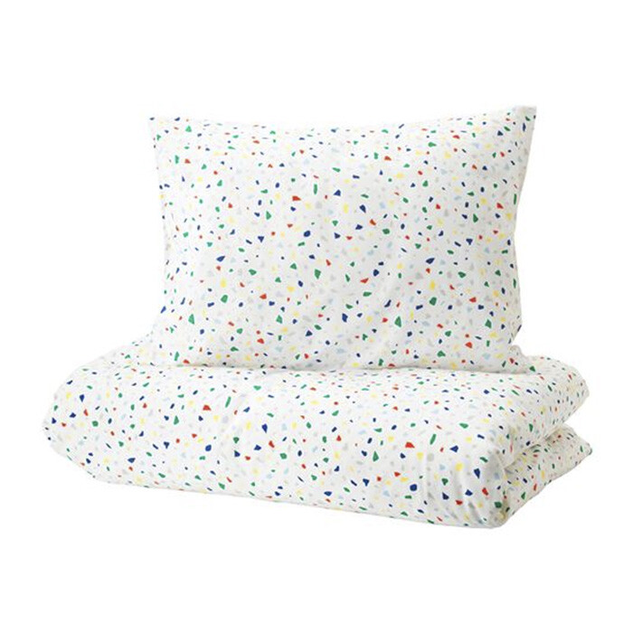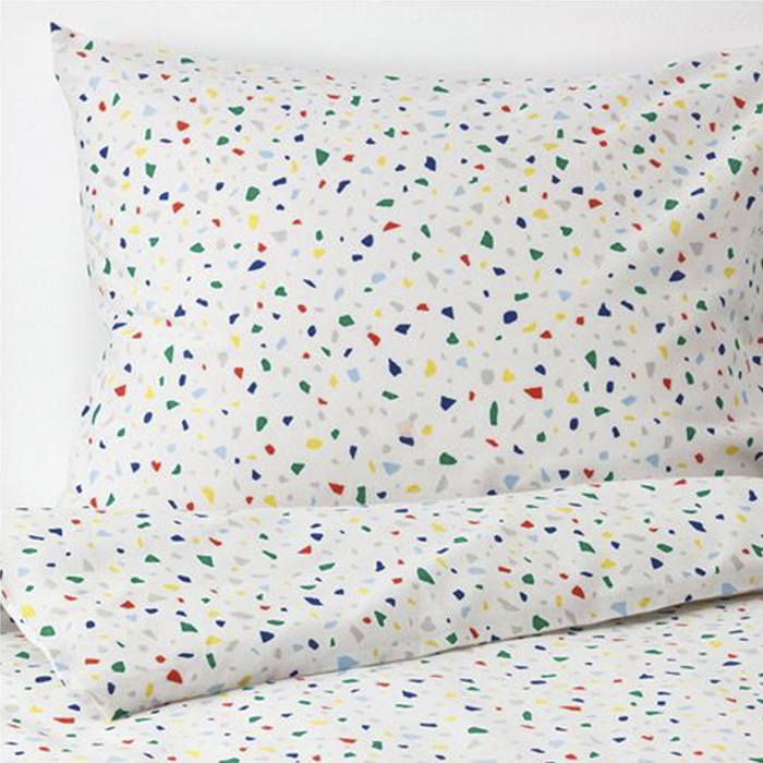 Пододеяльник и наволочка Мёйлигхет с орнаментом, напоминающим разноцветную мозаику, который легко комбинировать с другими цветами. Белье изготовлено из приятного к телу хлопка, произведенного с заботой о людях и природе.