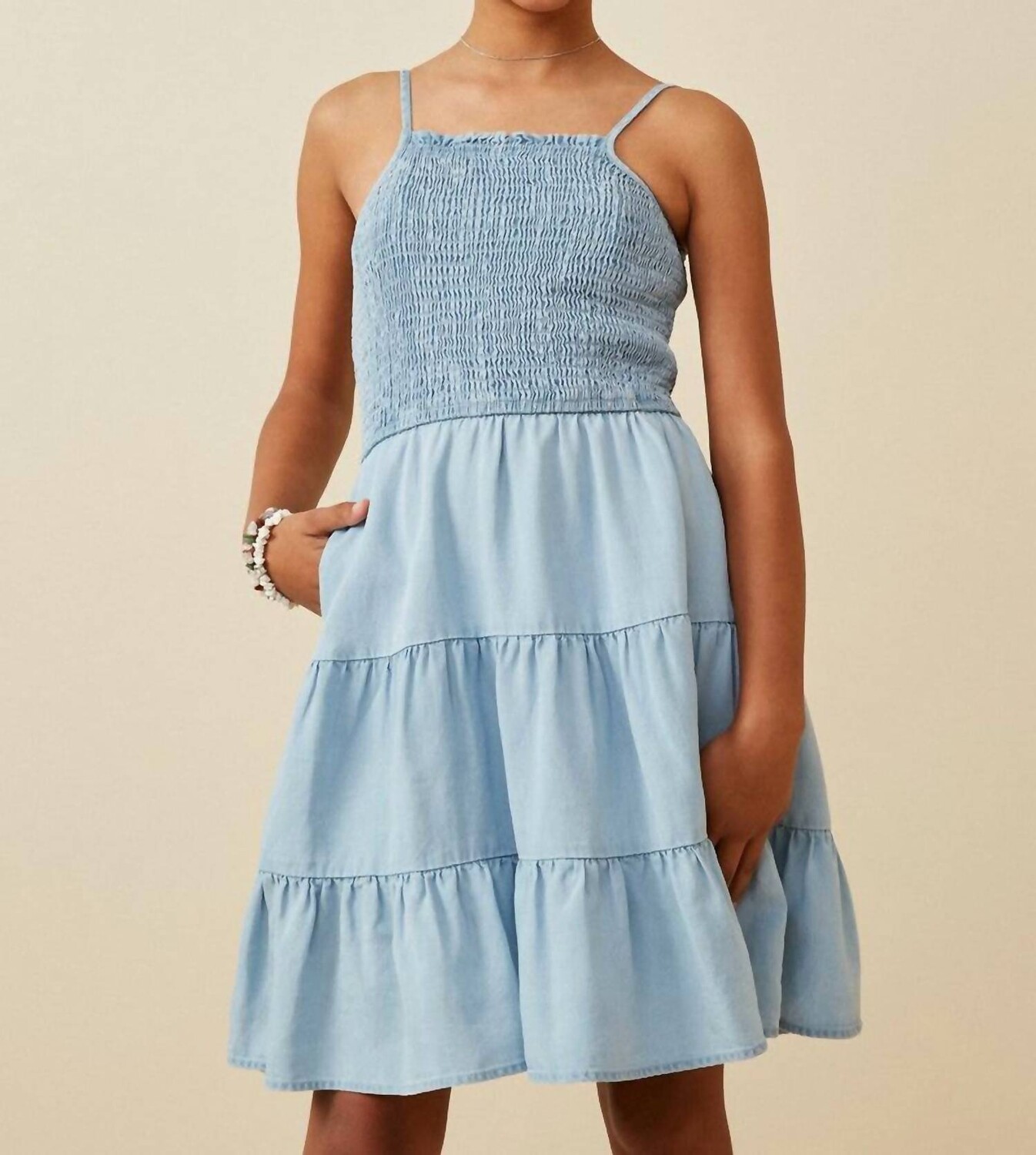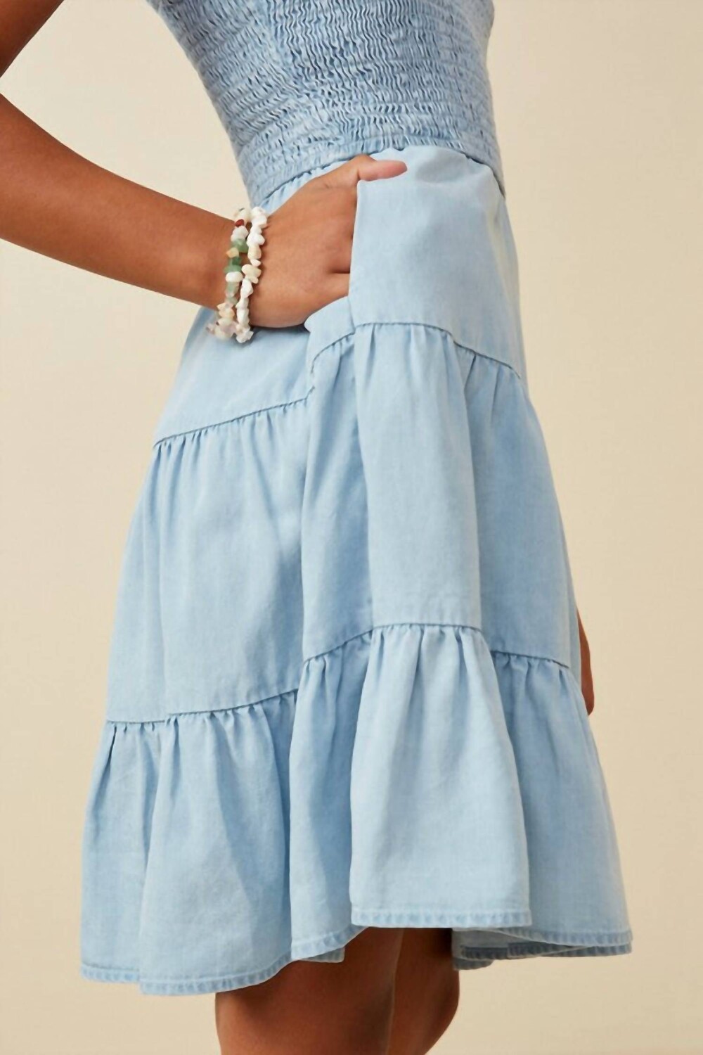 Молодежная девушка Hayden, Оливия, присборенная многоярусная юбка, джинсовое мини-платье из тенселя с регулируемыми бретелями.