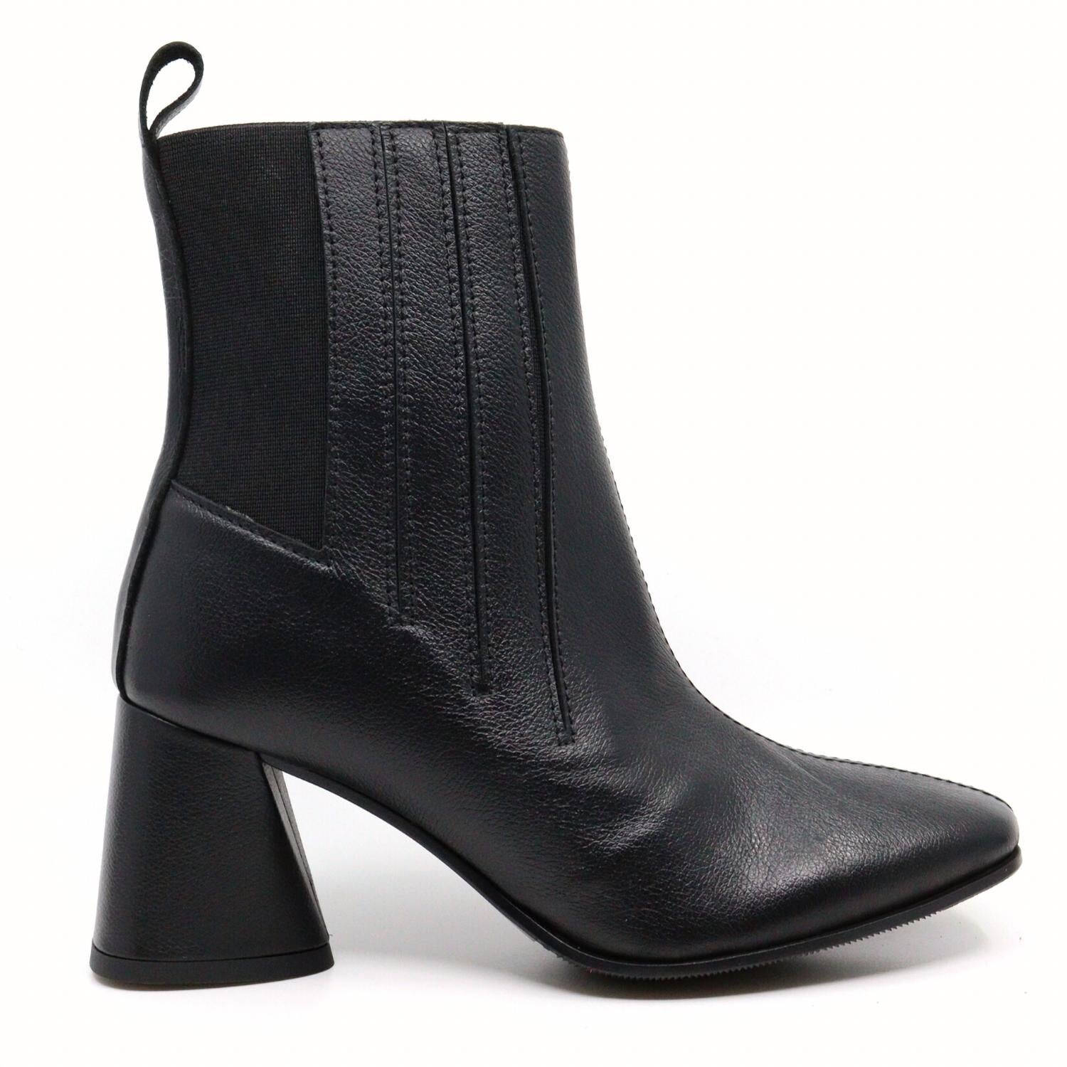 Встречайте идеальные и самые универсальные ботинки. Высота щиколотки позволяет легко переходить от дневного к вечернему стилю. Носите их с любимыми джинсами-скинни и футболкой, чтобы создать более непринужденный образ, или сочетайте их с любимым мини-платьем и курткой для ночной прогулки по городу. Эти ботинки — просто — *вздох* Это потрясающе. Уникальный каблук геометрической формы позволяет легко ходить и идеально подходит для следующего ужина в ресторане! Простой, но при этом изысканный дизайн, такой как передний шов, слегка закругленный носок и детали с выступами сзади, придают этому основному предмету гардероба современный вид. Материал верха: верх из коровьей кожи. Подкладка - лайковая кожа. Стелька - детская кожа. Подошва – синтетика. Высота каблука 2,4 дюйма. Сделано в Италии.