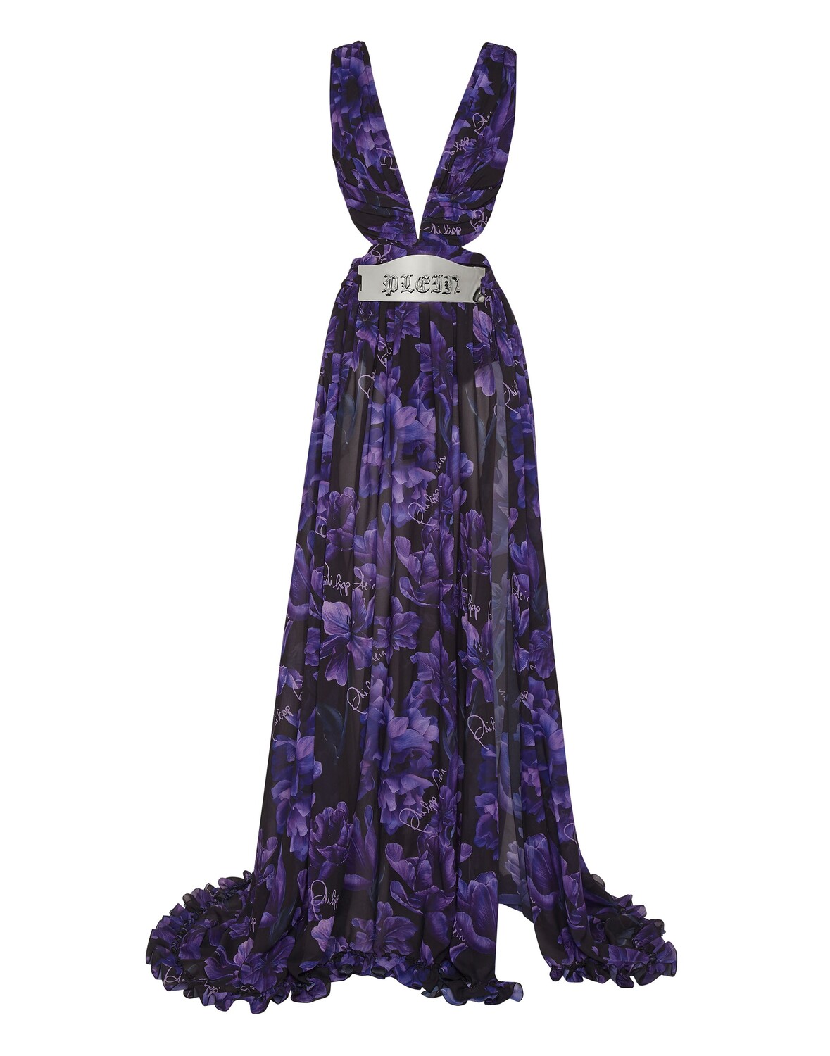 Шифоновое длинное платье с цветами Philipp Plein, черный