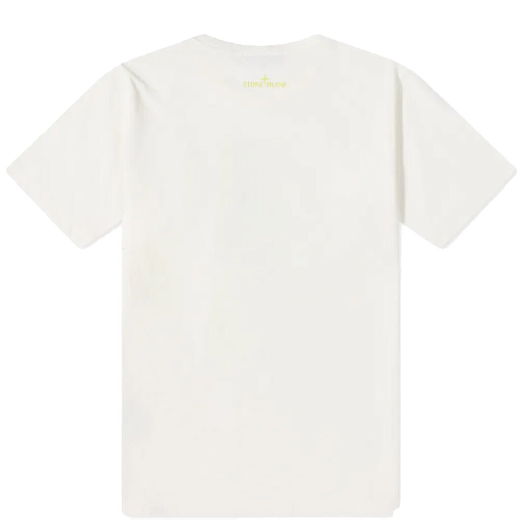 Классическая белая футболка для мальчиков-подростков от Stone Island Junior. Спереди имеется графический принт с логотипом контрастного желтого и черного цветов. Мягкое и удобное в носке, оно выполнено из эластичного хлопкового трикотажа. 100% хлопок. Машинная стирка (30*C)