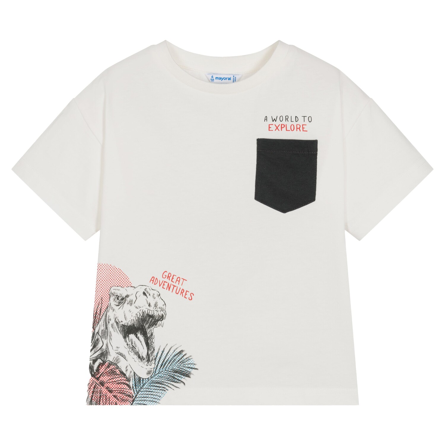 Белая футболка с карманом для мальчика от Mayoral. Одежда ECOFRIENDS из 100% экологически чистого хлопка. Футболка с коротким рукавом для мальчика. Круглый вырез. Функциональный передний карман. Узорчатый дизайн.100% хлопок