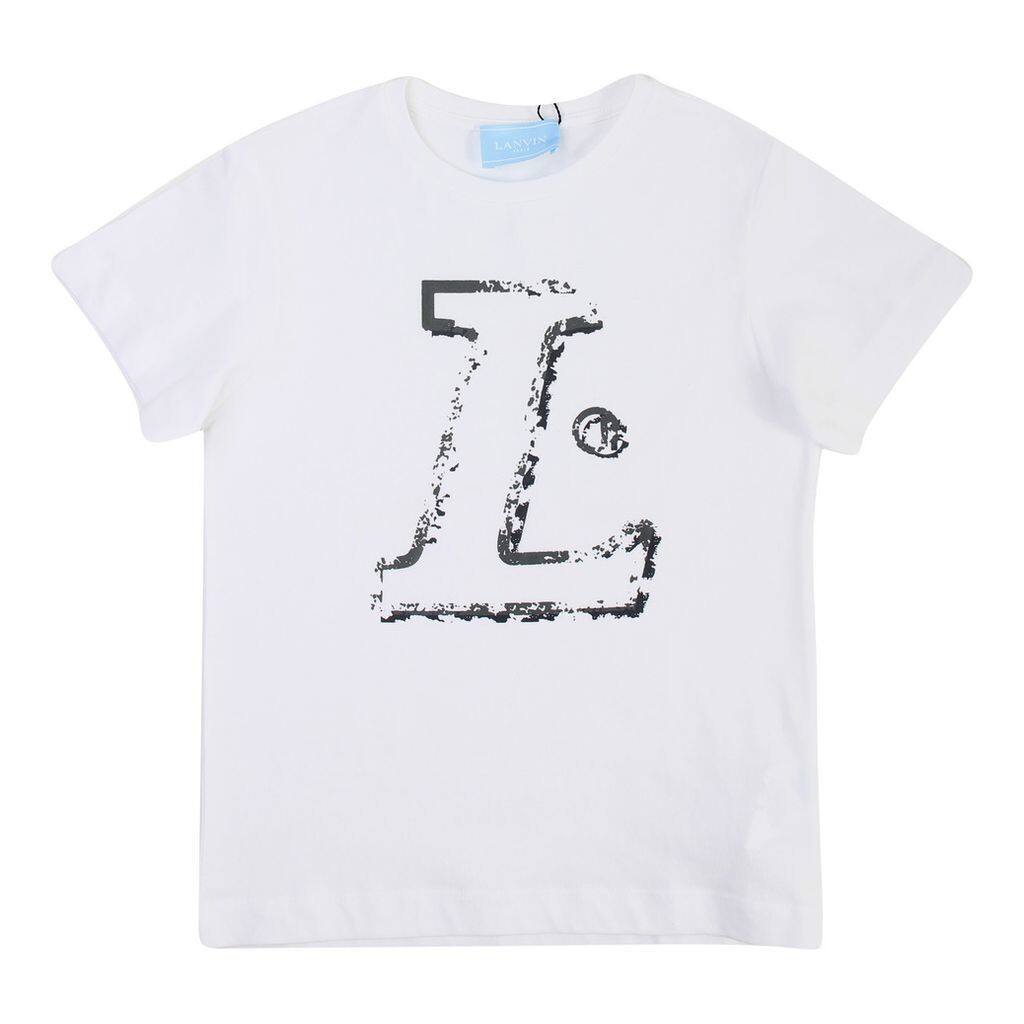 Белая хлопковая футболка с контрастным логотипом от LANVIN Enfant. Круглый вырез, короткие рукава и прямой низ. 100 % хлопок. Машинная стирка 30*CSKU -  4i8031ib280100.