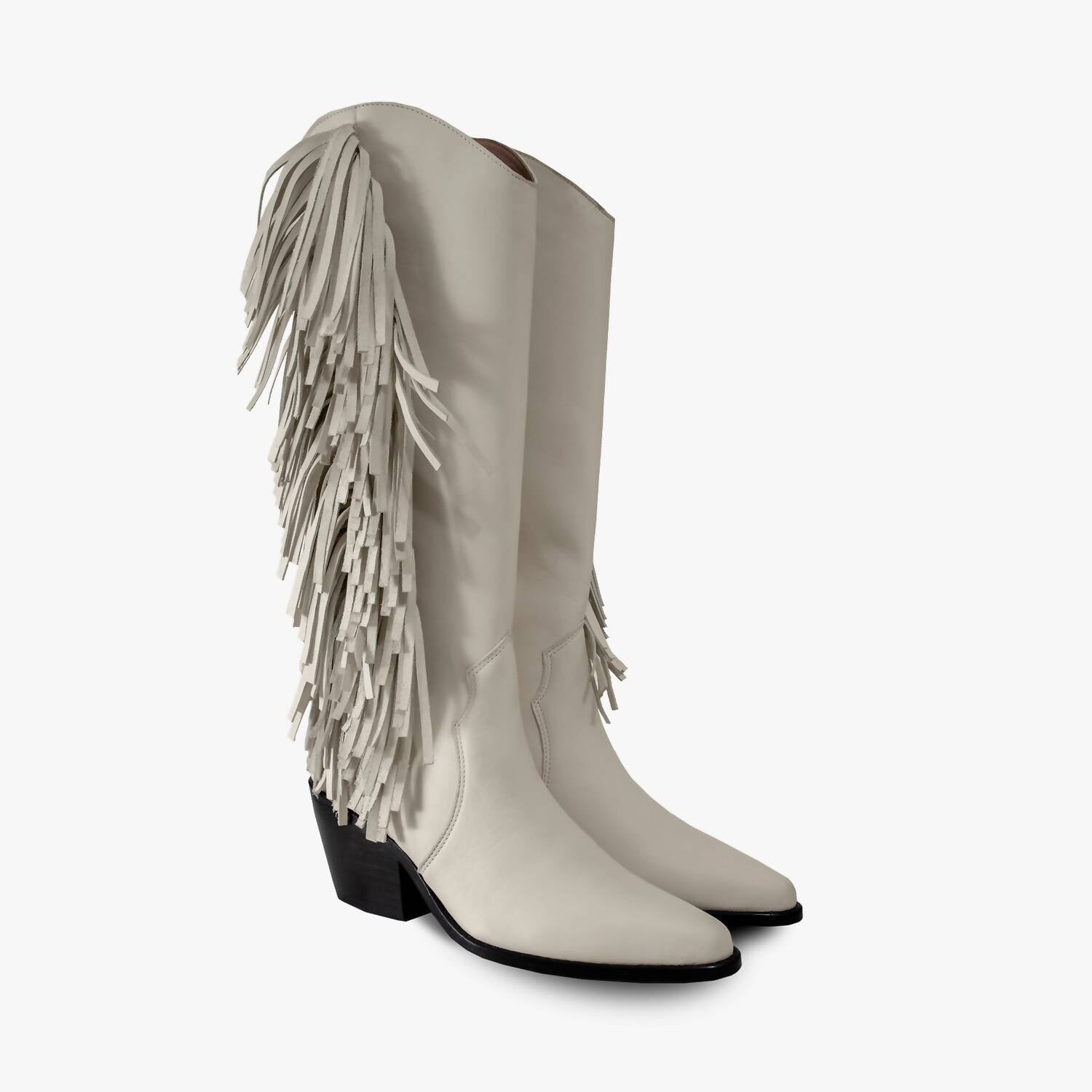 Будьте уверены в себе и продемонстрируйте свой безупречный вкус в этих модных и универсальных ботинках. Их классический стиль заставит вас носить эти ботинки сезон за сезоном. Ely White поможет вам. Наша первая модель длиной до колена с привлекательной бахромой по бокам. Ручная работа из 100% кожи цвета кости. Внутренняя и верхняя часть 100% кожа. Кожаная подошва. Металлическая молния. Высота каблука – 6,5 см. Размер соответствует, если вы находитесь между размерами, выбирайте размер больше. Ручная работа в Мексике.