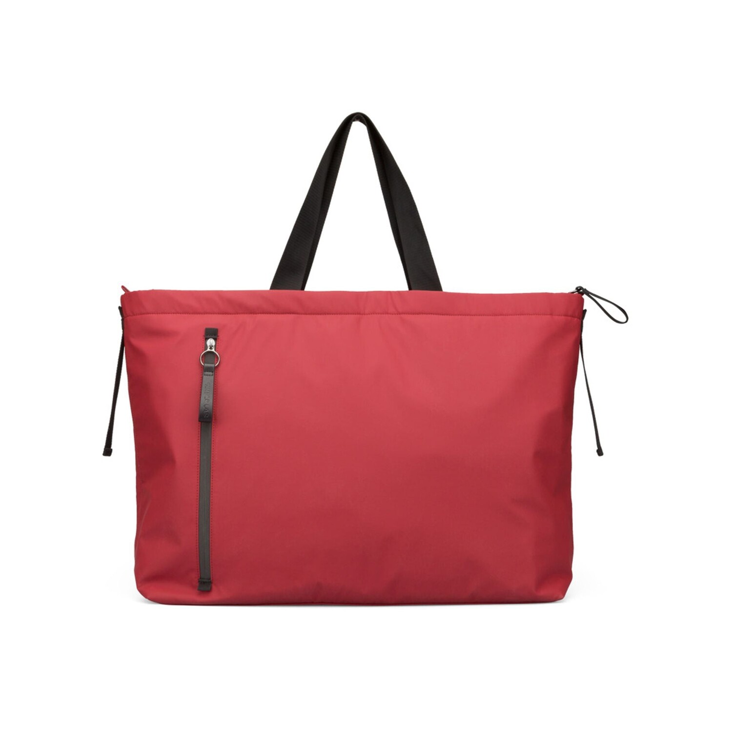 Сумка выходного цвета бордового цвета с яркими текстурированными деталями и фирменными деталями CAMPERLAB.