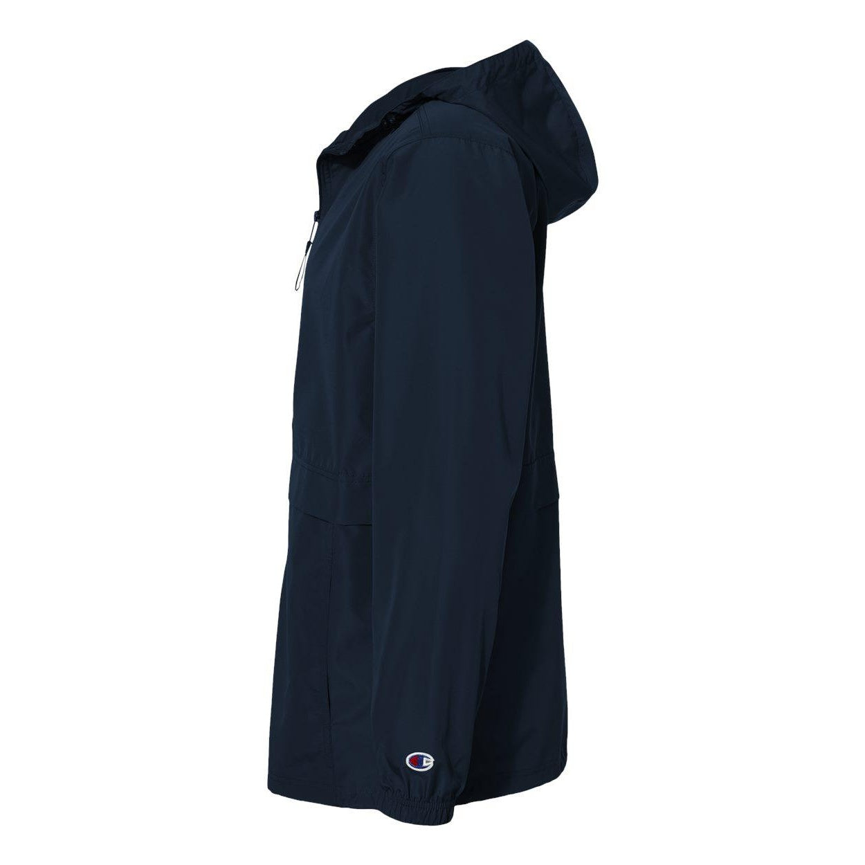 2,8 унции/ярд (США), 4,7 унции/л ярд (Калифорния), 100 % полиэстер, микропоплин. Ветро- и водоустойчив. Водолазный воротник с капюшоном. Регулируемый шнурок на капюшоне и по нижнему краю. Открытая, окрашенная в тон нейлоновой спиральной молнии. Внизу спереди в швах карманы. Втачные рукава. Закрытые эластичные манжеты. Нашивка чемпиона «С» на левом рукаве. Тканая этикетка на шее.