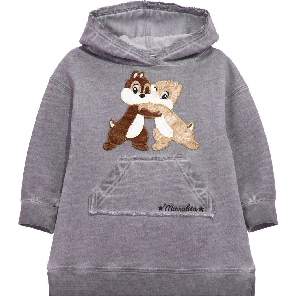 Серое платье-худи с бурундуками Monnalisa, серый