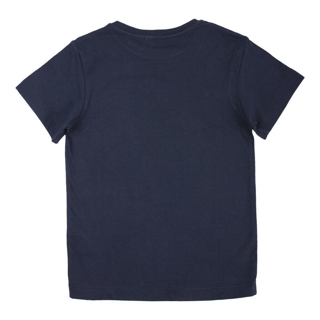 Темно-синяя футболка для мальчиков от французского люксового дизайнерского бренда LANVIN. Модель изготовлена ​​из мягкого хлопкового трикотажа и украшена спереди культовым логотипом бренда LANVIN PARIS черного цвета. 95 % хлопок, 5 % эластан. Машинная стирка 30*CSKU —  4i8001ib280622.