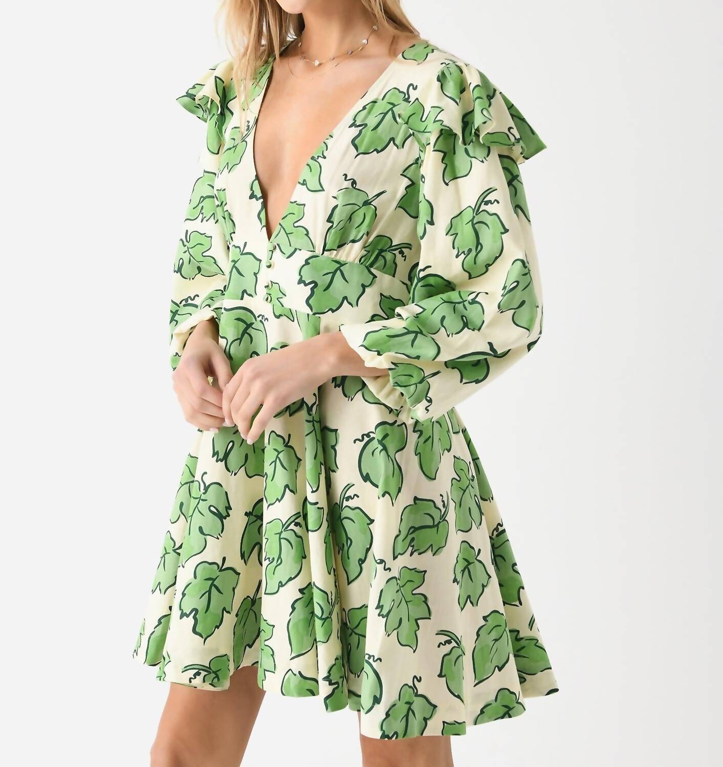 Мини-платье Cordelia с зеленым принтом в виде виноградных листьев KITRI