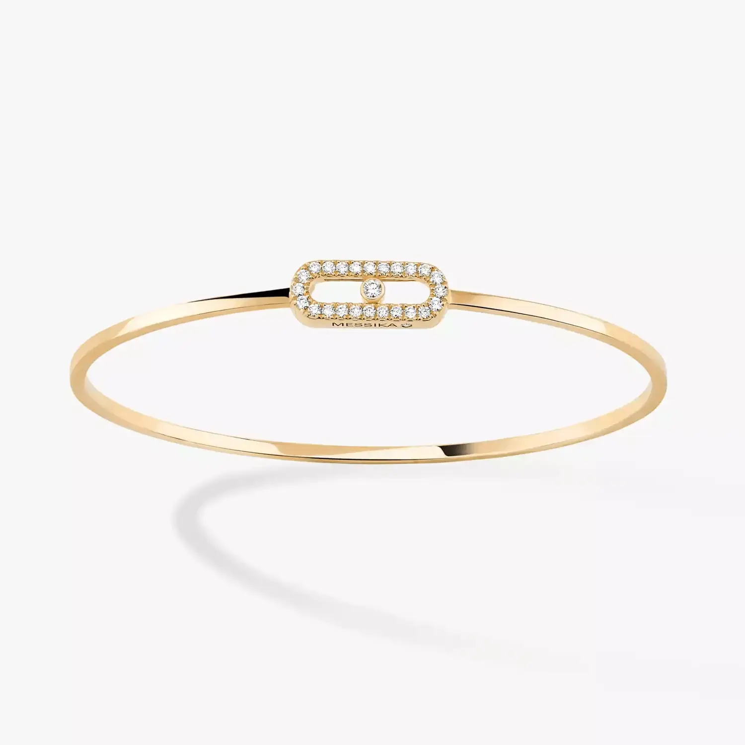 Это больше, чем браслет, это икона. Браслет Move Uno из желтого золота с бриллиантами гибкий и удобный. Он украшен фирменным мотивом Move Uno с бриллиантом, который танцует в ритме ваших движений. Этот тонкий и легкий браслет с бриллиантами минималистских линий можно носить отдельно, чтобы подчеркнуть его ценность, или в сочетании с другими украшениями с бриллиантами Messika, чтобы создать модный эффект. Нам нравится его застежка, искусно спрятанная под центральным мотивом. Бриллиантовый браслет, который прекрасно дополняет другие украшения с бриллиантами из коллекции Move Uno.