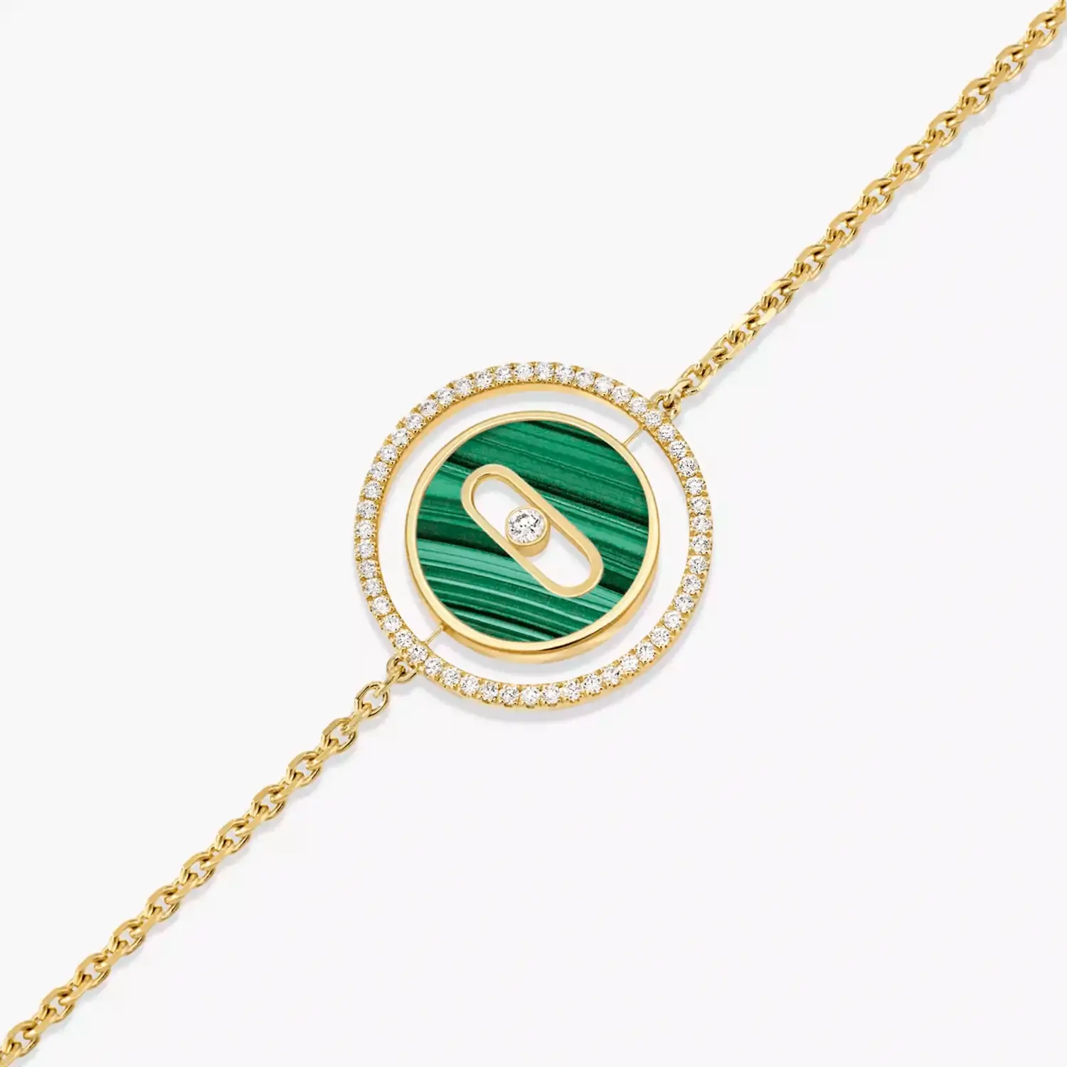 Основательница ювелирного и ювелирного дома Messika Валери Мессика впервые создает свою знаковую коллекцию украшений Move Jewelry, украшенных разноцветными камнями. Настоящая мантра, эти камни отражают вашу индивидуальность и раскрывают ваш темперамент. Так же, как малахит, драгоценный камень зеленого цвета, столь же мощный, как мудрость Матери-природы. В сочетании с теплом желтого золота и сиянием бриллиантов, ожерелье с малахитом Lucky Move завораживает своим светом и движущимся бриллиантом, который стал фирменным знаком ювелирного дома. Носите его отдельно с элегантной простотой или в многослойном виде в современном богемном духе.