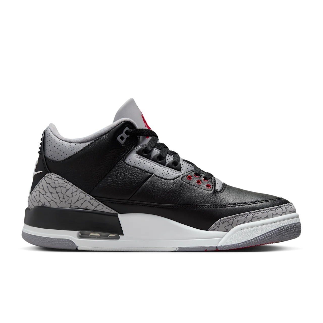 Невозможно стать признанной классикой, не сделав чего-то такого, чего мир еще не видел. В третьих Air Jordan многое происходит впервые. Впервые на них появился Jumpman. Впервые на кроссовках появился слоновий принт. Первые Jordan, разработанные Тинкером. Как и величие, эта обувь появляется не так часто. Но когда это происходит, она становится особенной. Это издание «Black Cement» максимально приближено к оригиналу, выпущенному в 88-м году. Гладкая кожа служит фоном для культовых накладок со слоновьим принтом и фирменного брендинга Nike Air на пятке, а огненно-красный логотип Jumpman на языке отсылает к наследию MJ в Чикаго.
