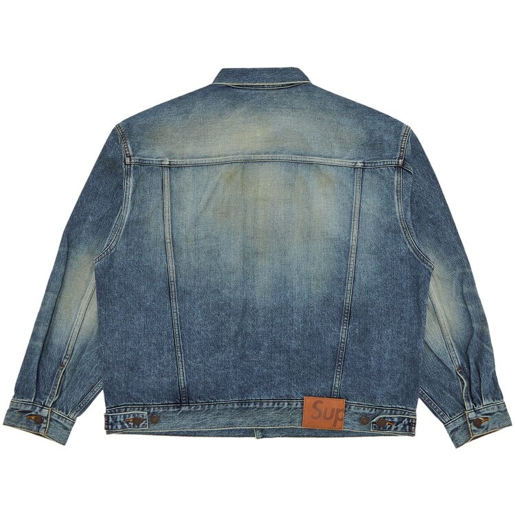 Куртка Supreme Distressed Selvedge Trucker Jacket, цвет Washed Indigo