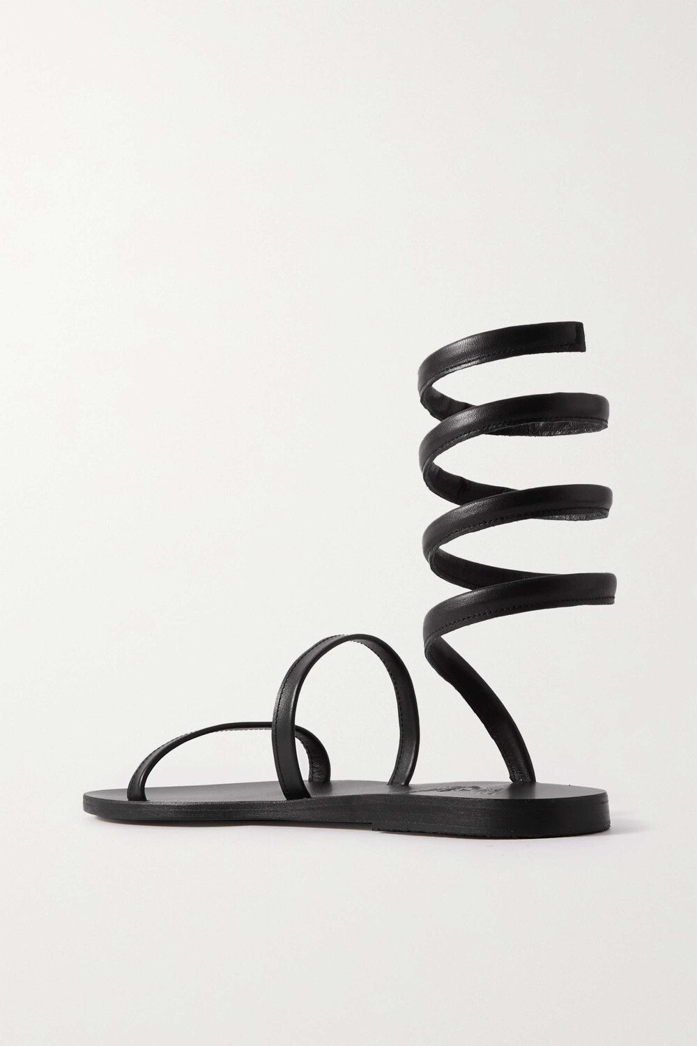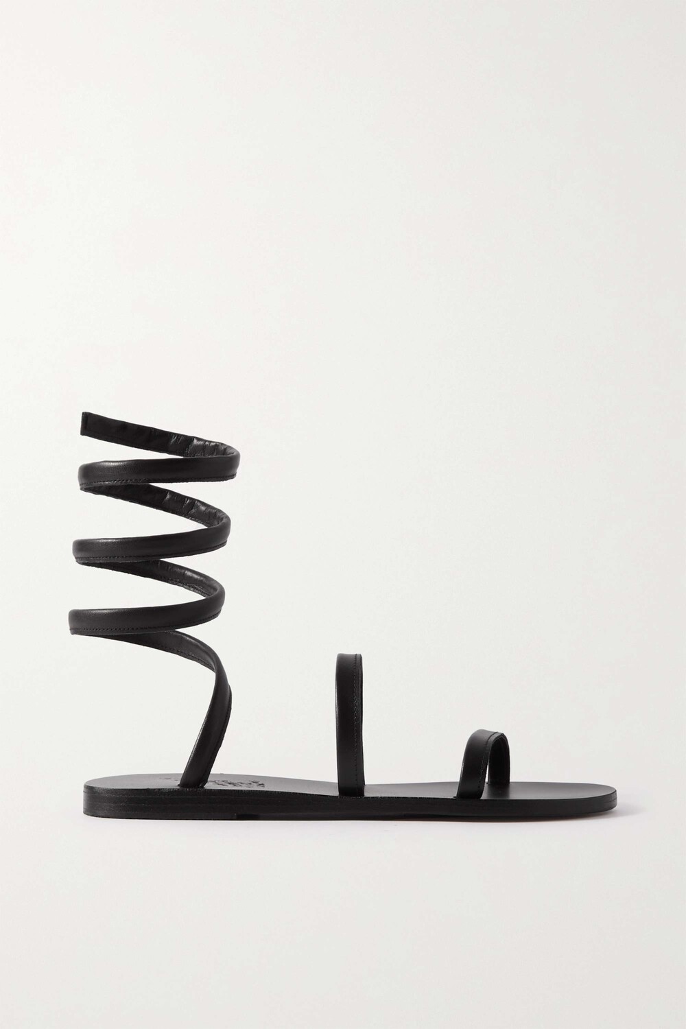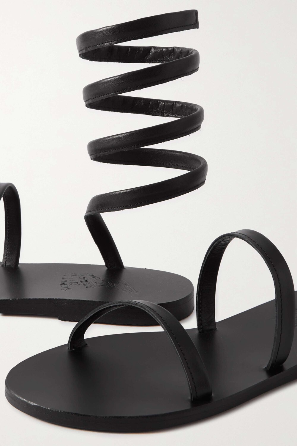 Пара Ancient Greek Sandals 'Ofis' имеет спиральный дизайн, вдохновленный классическими стилями гладиаторов. Они изготовлены вручную из мягкой черной кожи и одинаково круто смотрятся как с мини-юбками, так и с прямыми брюками.