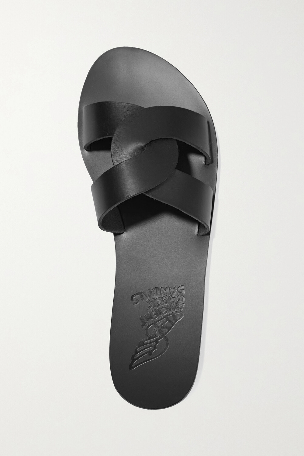 Когда дело доходит до мастерства, Ancient Greek Sandals остается верным традициям, чтобы гарантировать высочайшее качество. Эти кожаные шлепанцы Desmos, изготовленные вручную опытными мастерами с использованием многовековых технологий, имеют переплетенные ремешки, создающие эффект выреза. Будь то в отпуске или в городе, они подойдут практически ко всему в вашем гардеробе. Здесь представлены: топ Orseund Iris, брюки Matteau, куртка Helmut Lang, объемная сумка Loeffler Randall.