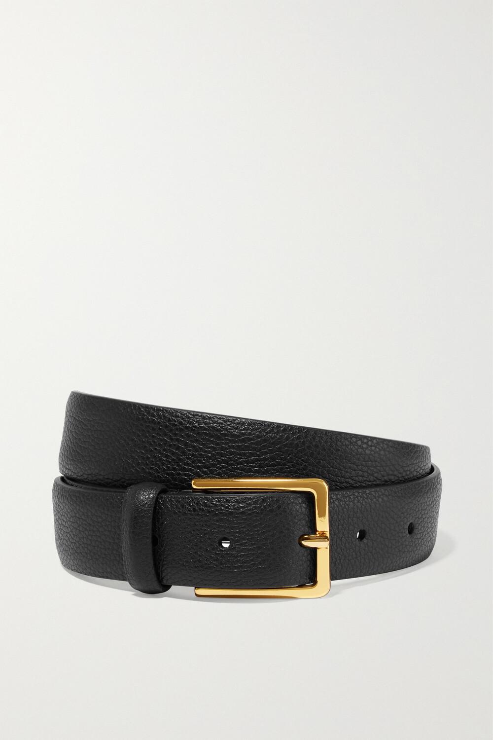 Ремни Anderson тщательно изготавливаются вручную в Италии — для изготовления каждого из них требуется до 100 шагов. Эта модель выполнена из черной фактурной кожи и имеет полированную золотую пряжку. Используйте его, чтобы стянуть свободный блейзер на талии или проденьте его через петли ваших любимых джинсов. Здесь показано с: платьем-рубашкой The Line By K, джинсами Totême, серьгами Laura Lombardi, колье Laura Lombardi.