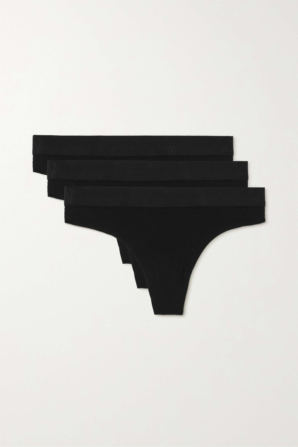 ЭКСКЛЮЗИВ В NET-A-PORTER. Нижнее белье CDLP создано с использованием лиоцелла TENCEL, древесного волокна, изготовленного по технологии замкнутого цикла. Эти эластичные трусики-стринги идеально подходят, если вы предпочитаете минимальное прикрытие. Они упакованы в упаковку из трех штук и отделаны репсовой лентой с тисненым логотипом. Носите их с подходящим бюстгальтером с мягкой чашкой.