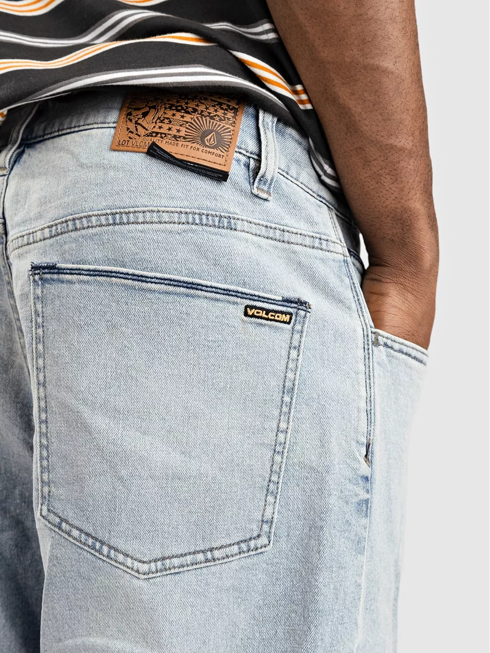 Информация о материале: 100% хлопок Характеристики материала: Джинсовая ткань Особенности: 5 карманов Посадка: Свободный крой Высота талии: Средняя посадка Особенности Volcom Забота о воде для меньшего потребления воды при производстве 19-дюймовые штанины Необработанный джинсовый материал Карман для монет V-образная петля для ремня Суперсвободный крой