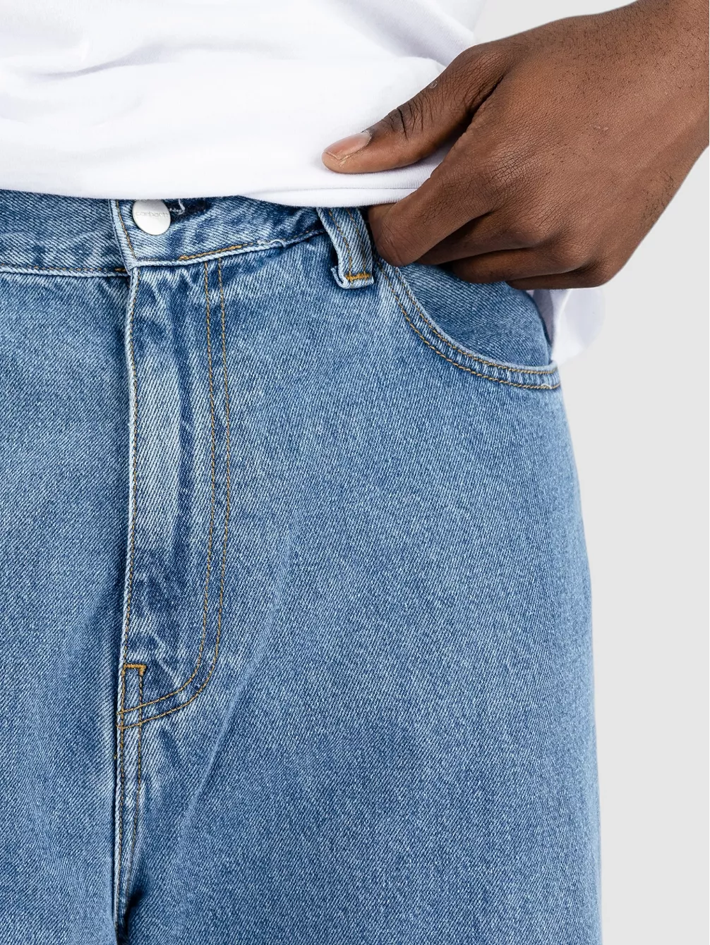 Информация о материале: 100% хлопок Характеристики материала: Джинсовая ткань Особенности Мужские джинсы Carhartt WIP Landon Свободный зауженный крой, нормальная высота талии Потертость V-образный седельный шов на спине Закрепочные швы в особо напряженных местах Пуговица и молния Квадратная бирка на спине