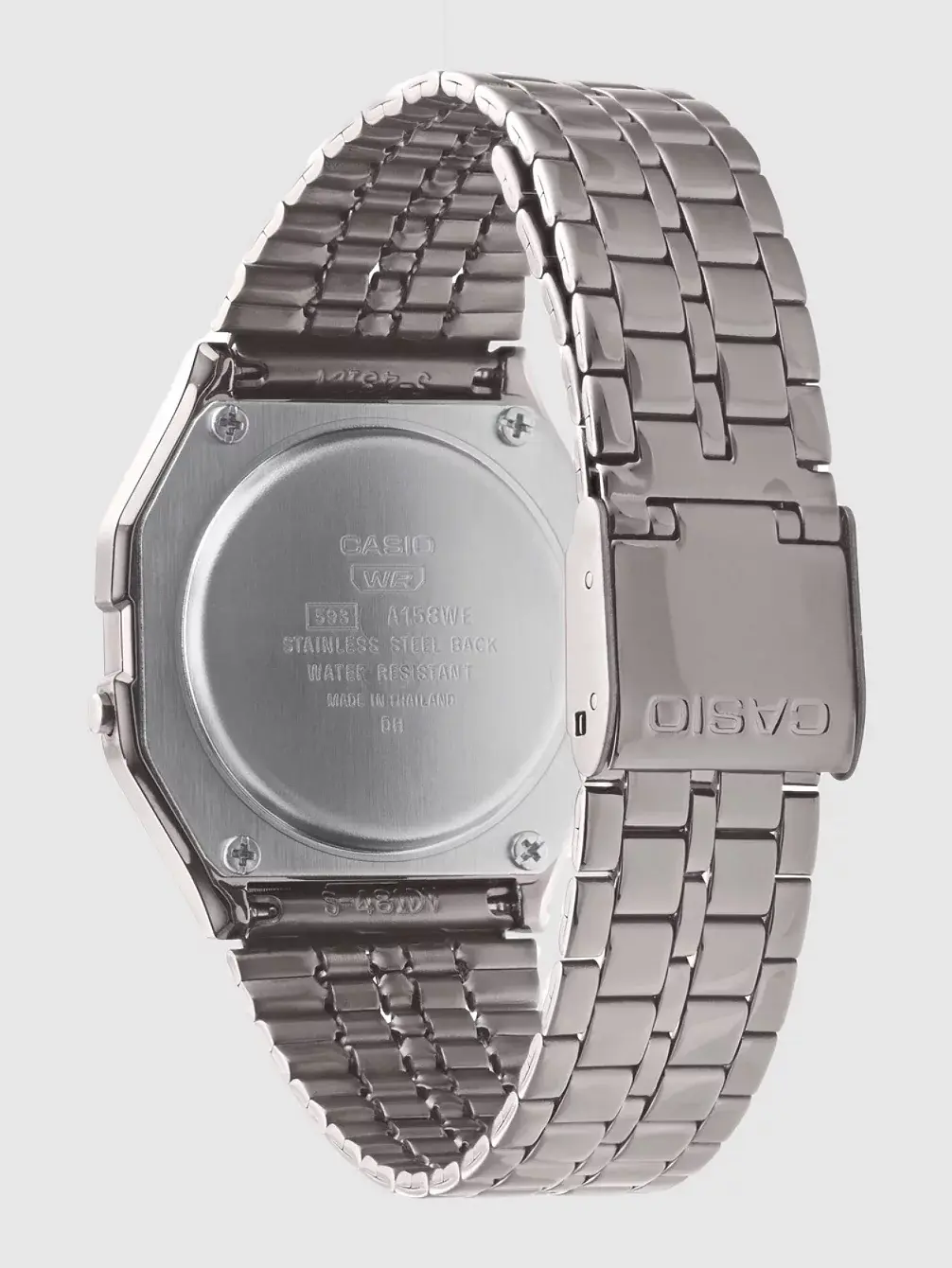 Винтажные часы Casio со стилем и необходимыми функциями. Casio A158WETB-1AEF является частью винтажной линии Casio и впечатляет своим классическим стилем. Но стиль – это еще не все, поэтому это ювелирное изделие предлагает, среди прочего, функцию остановки, светодиодную подсветку, функцию будильника и автоматический календарь. Организаторский талант на запястье.