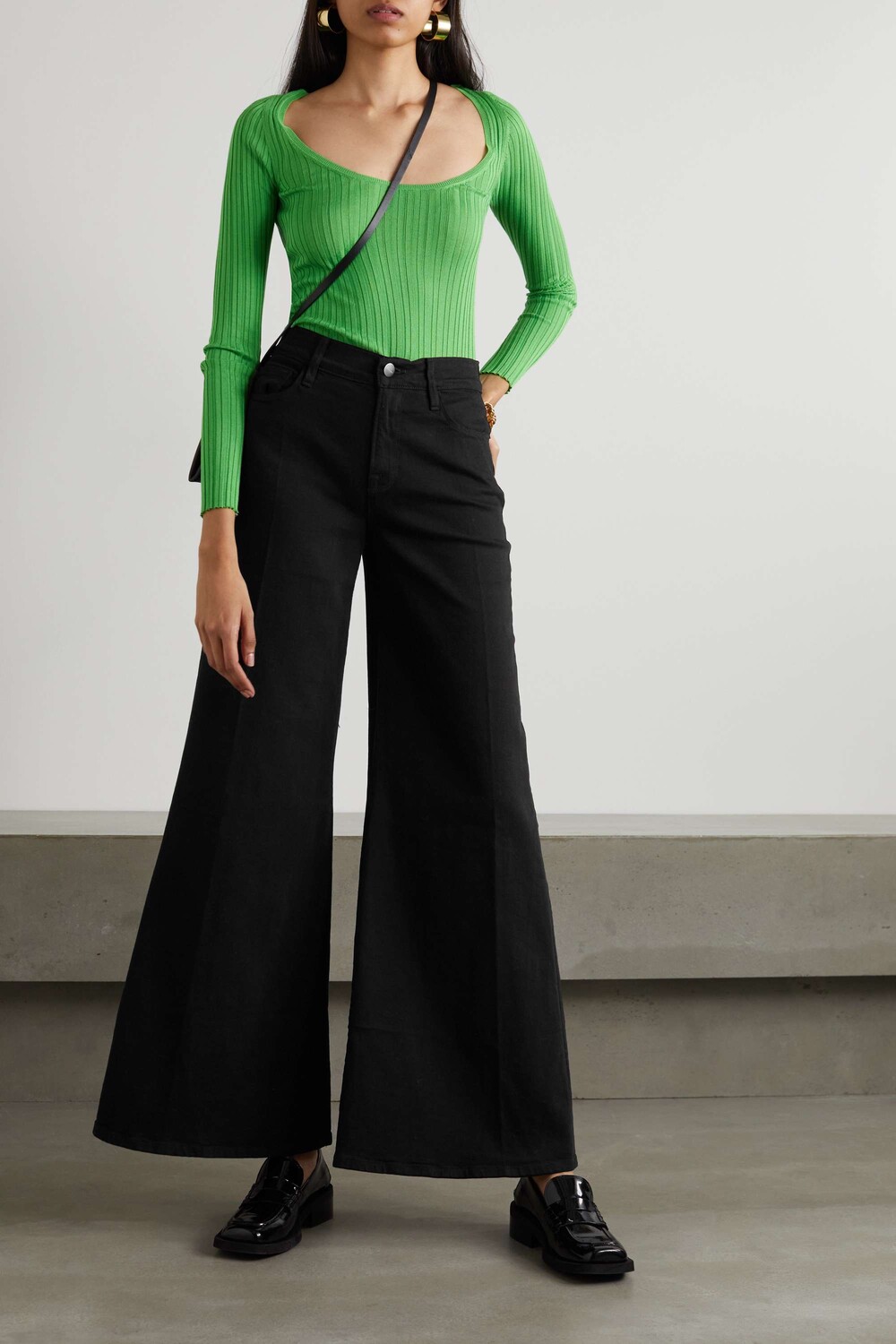Джинсы Le Palazzo от FRAME — одна из самых продаваемых вещей бренда — их широкий силуэт — отличный способ использовать тренд 70-х. Эта пара скроена из черного денима с небольшим натяжением для большего комфорта. Чтобы сбалансировать длину, носите ее с блейзером и заправленной футболкой.