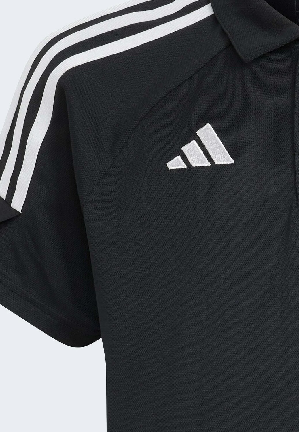 Футболка поло из быстросохнущей ткани для комфорта во время тренировок. Особенности: отложной воротник, пуговичная планка, короткие рукава, фирменные полоски на плечах.