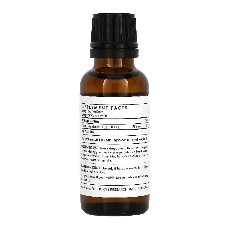 Размер порции: две капли, содержат витамин D (в виде витамина D3) (1000 МЕ) 25 мкг. Вспомогательные вещества: Масло средне цепочечных триглицеридов, смешанные токоферолы.