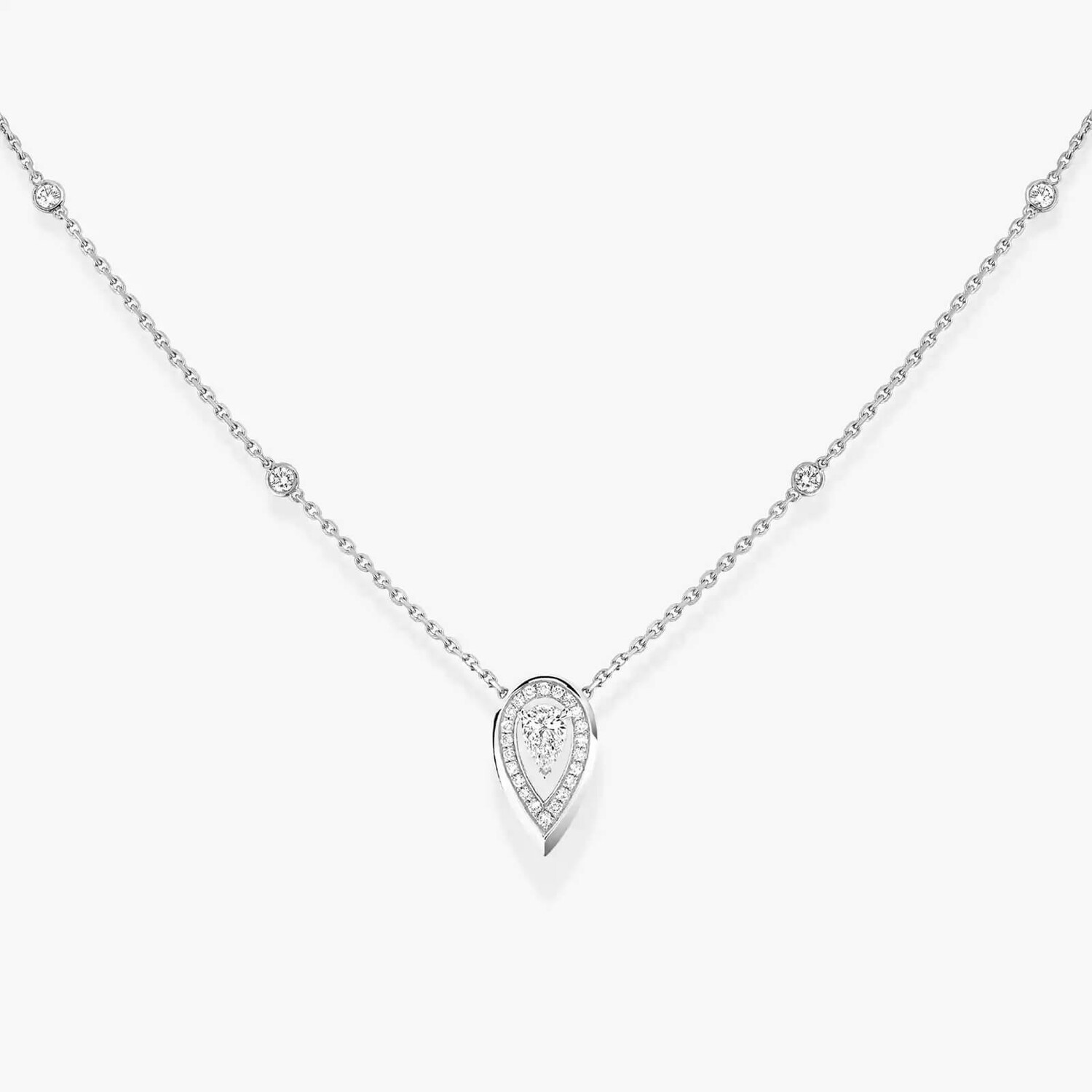Бриллиантовое колье для тех, кто не боится заявить о себе. В музыке Fiery Валери воплощает свою страсть к ювелирным изделиям. Fiery - это ее страсть, ее любовь к бриллиантам грушевидной огранки, ее желание играть с противоположностями и исследовать контрасты дизайна, формы и света. Это колье из белого золота с бриллиантами в центре весом 0,10 карата, окруженное изящно оправленными бриллиантами, придает коже огненное сияние.