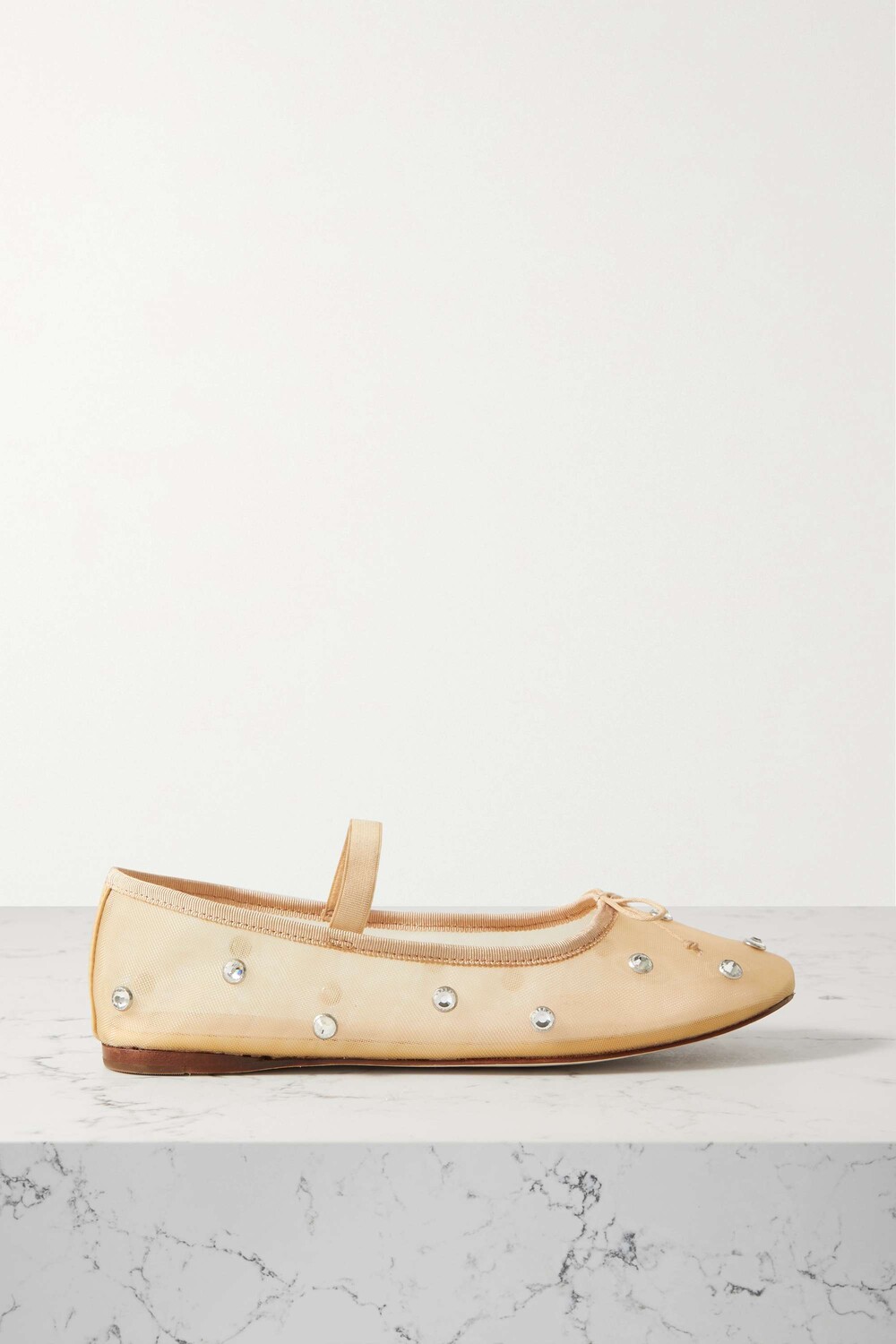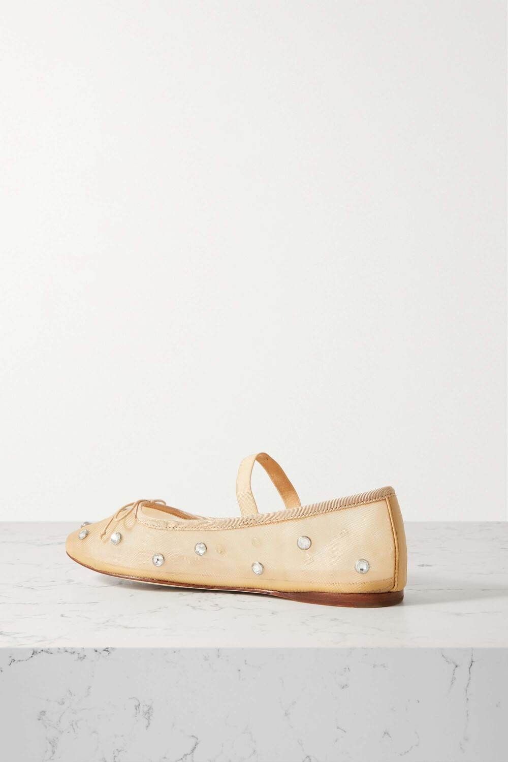 Балетки Leonie от Loeffler Randall с изящными бантиками и эластичными ремешками очень напоминают пары, которые носят танцовщицы. Они сделаны из слоев прозрачного тюля, усыпанного крупными кристаллами для создания гламурного, светоотражающего эффекта, и на тонких деревянных каблуках. Носите свое с платьями миди, чтобы подчеркнуть детали.