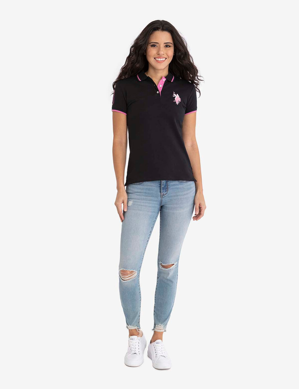 Рубашка-поло - это современная классика, которая делает ее неотъемлемой частью гардероба вне времени. С контрастной планкой на трех пуговицах, большим многотональным логотипом на правой груди, ребристыми рукавами с наконечниками и вышитой нашивкой «три» на правом рукаве, эта футболка отделана разрезами по бокам и заканчивается ниже талии.