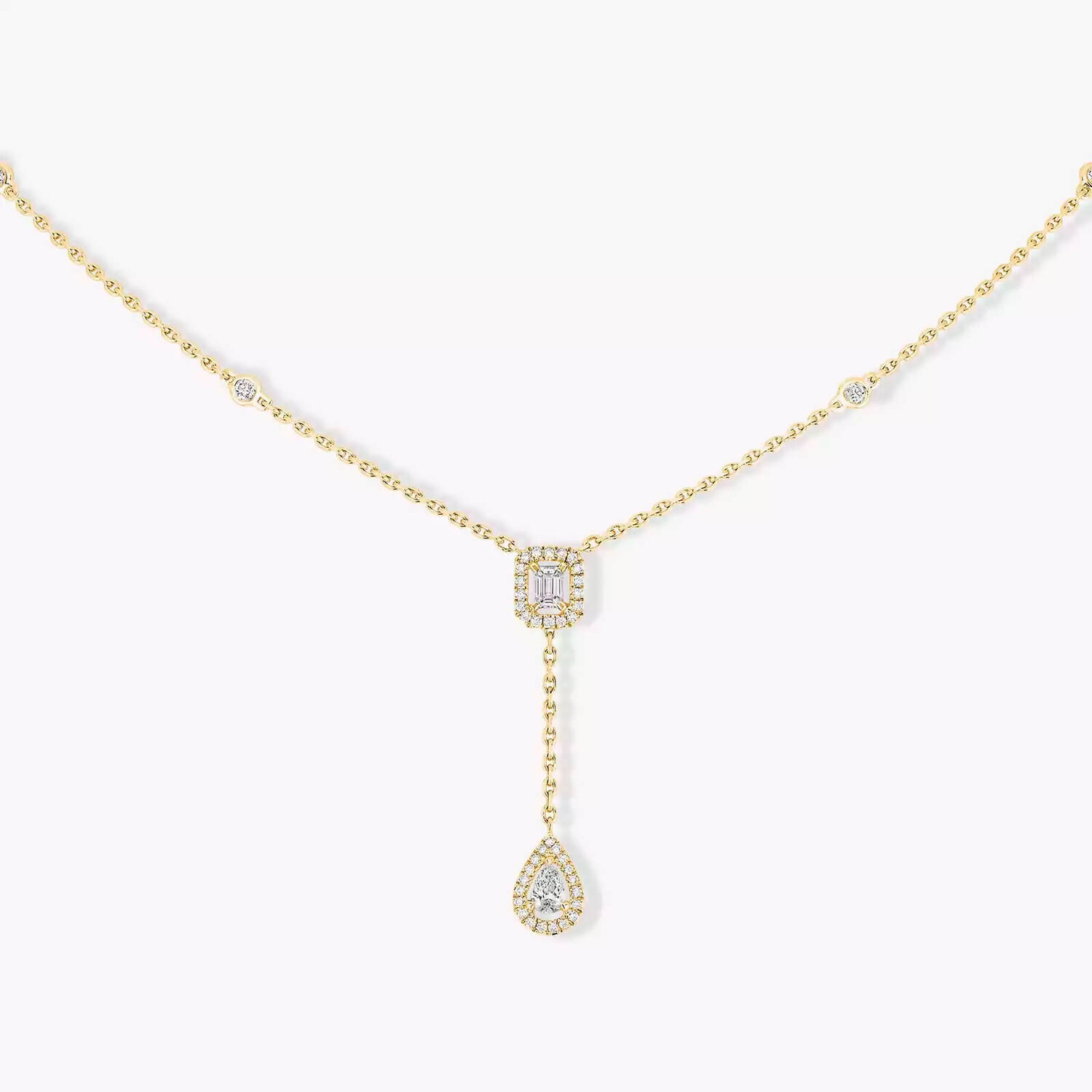 Бриллиантовое колье My Twin из 18-каратного желтого золота весом 0,10 карата, выполненное в новом стиле, подчеркнет самые классические образы в этой версии из желтого золота. Это колье-галстук с бриллиантами из желтого золота ненавязчиво подчеркнет ложбинку декольте солнечным сиянием. Блеск двух камней огранки груша и изумруд весом по 0,10 карата каждый дополняют антураж и бриллианты в микро-оправе на цепочке. Колье-галстук с бриллиантами из желтого золота, которое легко носить каждый день с рубашкой с V-образным вырезом или шелковой блузкой.