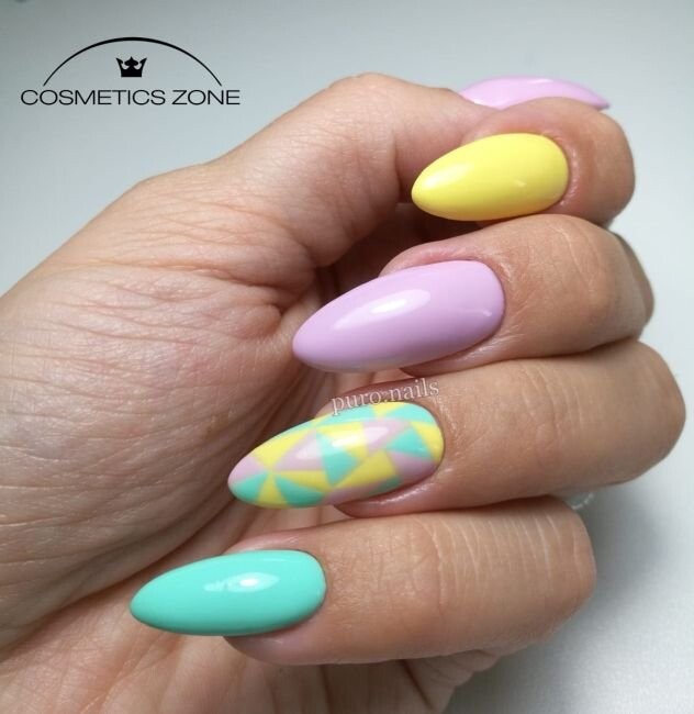 Нанесите тонкий слой гибридного лака Cosmetics Zone выбранного цвета и просушите в лампе (UV-2-3 мин/LED 30-60 сек).