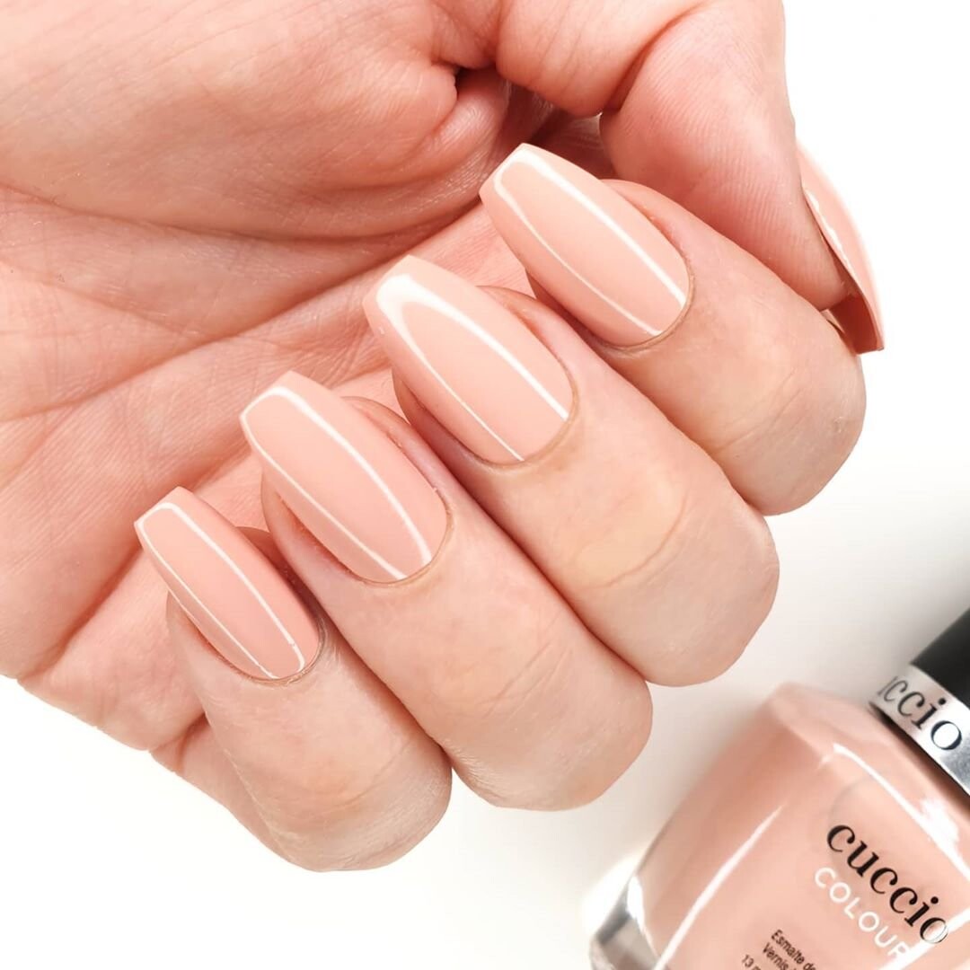 Нанесите тонкий слой лака выбранного цвета Cuccio Color на каждый ноготь. После высыхания нанесите второй слой.