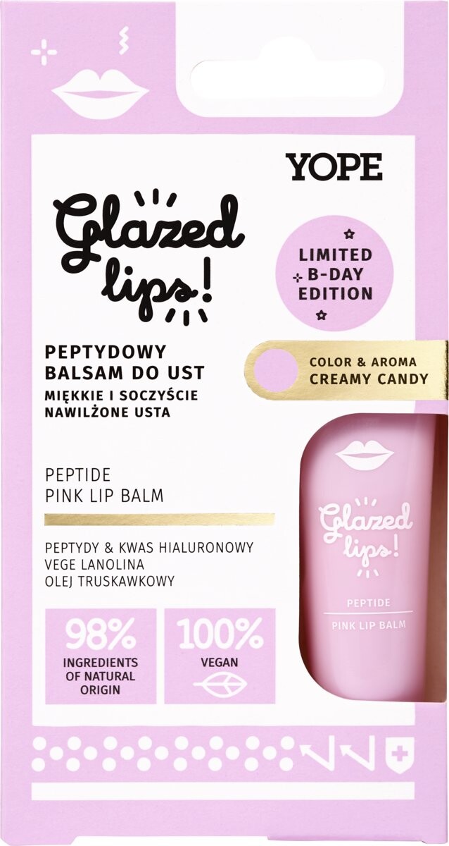 ПЕПТИДНЫЕ БАЛЬЗАМЫ ДЛЯ ГУБ МЯГКИЕ И СОЧНЫЕ УВЛАЖНЕННЫЕ ГУБЫ ПЕПТИДЫ И ГИАЛУРОНОВАЯ КИСЛОТА РАСТИТЕЛЬНЫЙ ЛАНОЛИН МАСЛО КЛУБНИКИ ГЛАЗИРУЕМЫЕ ГУБЫ Этот кремовый питательный бальзам позволит вам легко добиться эффекта глазированных, сочных губ. Поддерживает барьерные функции, интенсивно питает и увлажняет губы, без ощущения липкости. НАТУРАЛЬНО УДИВИТЕЛЬНЫЕ ИНГРЕДИЕНТЫ: Пептиды и гиалуроновая кислота восстанавливают упругость и придают губам более полный вид. Ланолин Vege повышает упругость и эластичность губ, разглаживая их. Масло клубники питает, увлажняет и придает эластичность.
