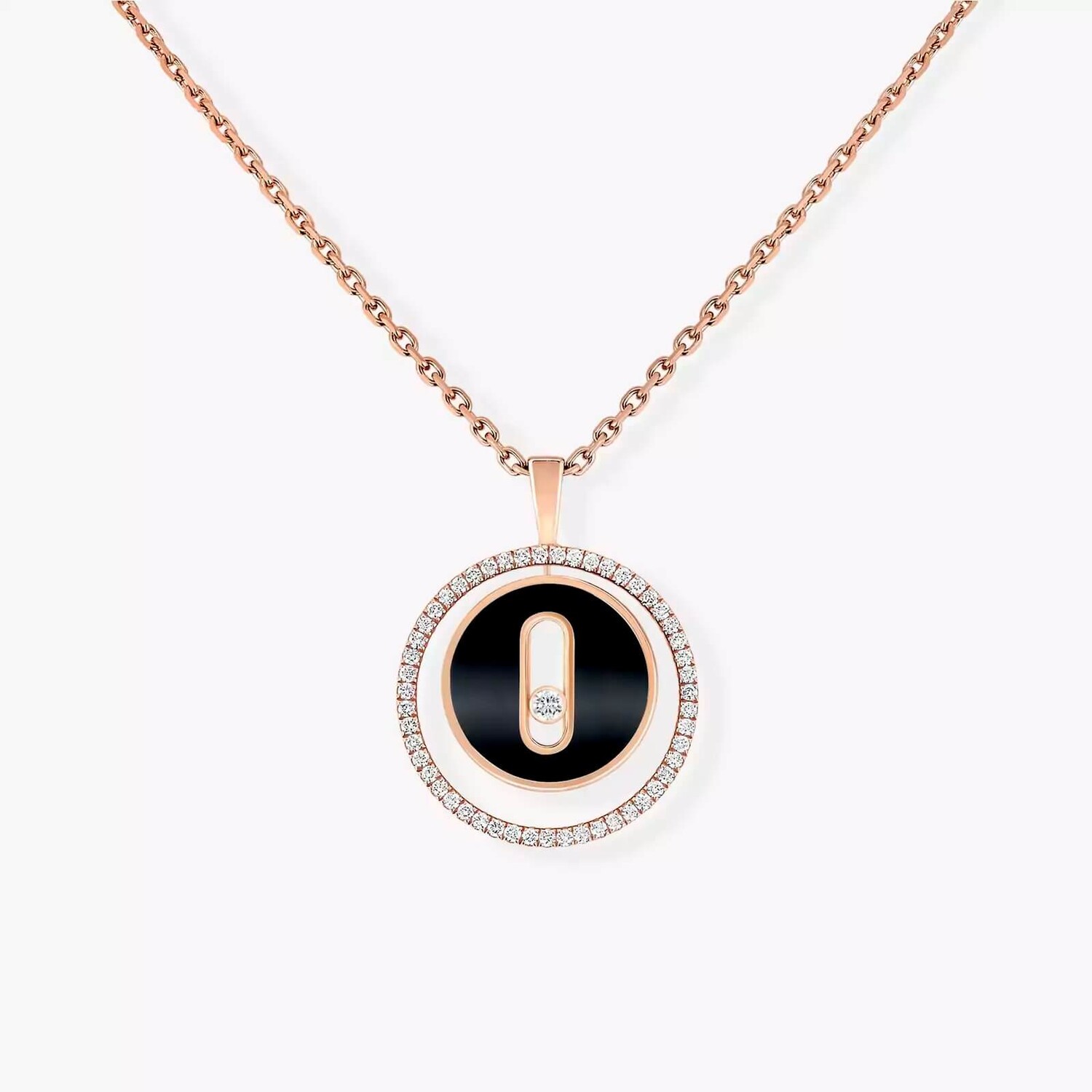 Колье из розового золота с бриллиантами и ониксом Lucky Move - идеальный выбор для женщин, которые сами управляют своей судьбой. Оникс - драгоценный камень, который выделяется своим насыщенным черным цветом и символизирует силу и смелость. Его можно носить как с простым, так и с ярким нарядом, застегивать на шее или ниже, благодаря скользящей застежке, которая позволит вам подобрать его к любому случаю.